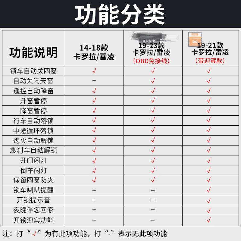 忠诚卫士 丰田14-23款卡罗拉双擎雷凌一键自动升窗器落锁原厂改装