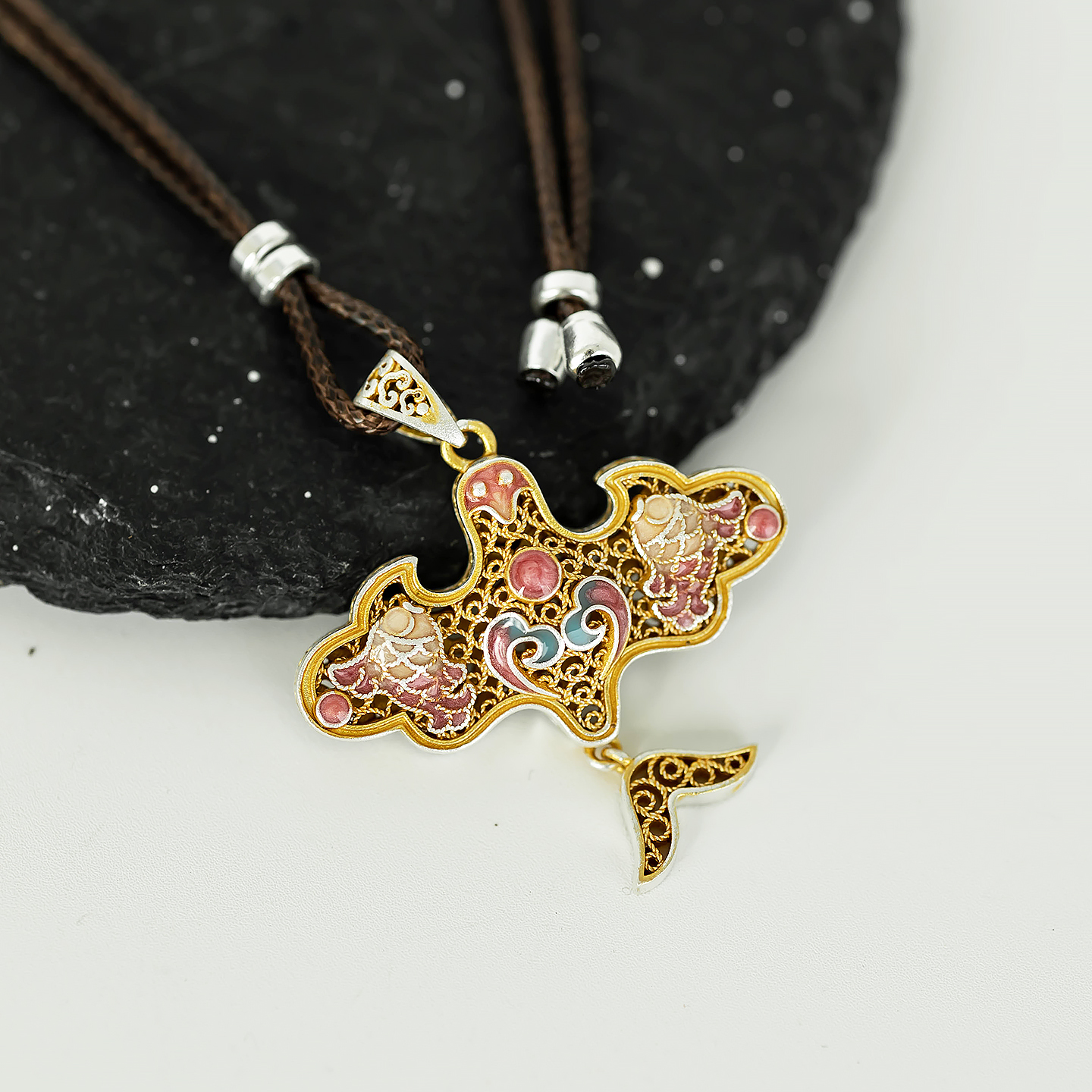 彩鸢 纯银999.9足银描金珐琅彩双鱼燕子风筝项链锁骨链新中式