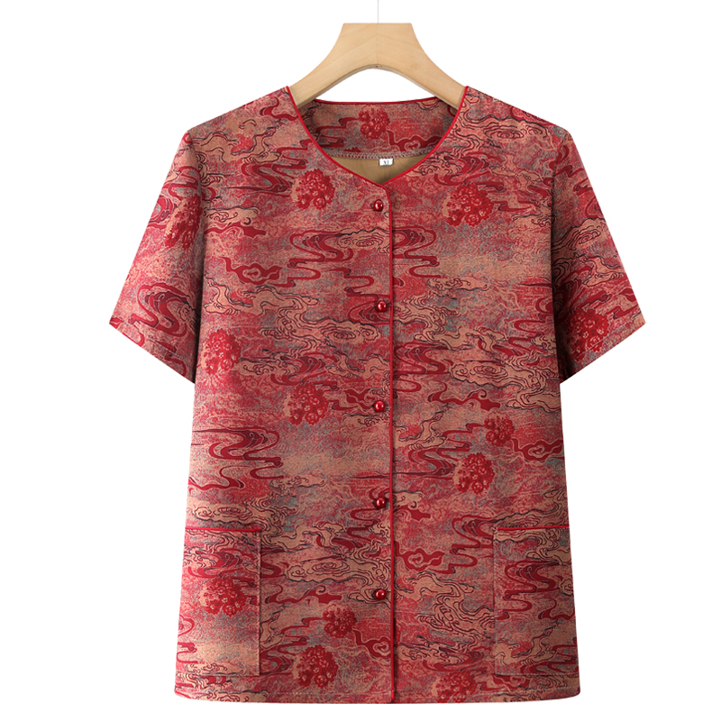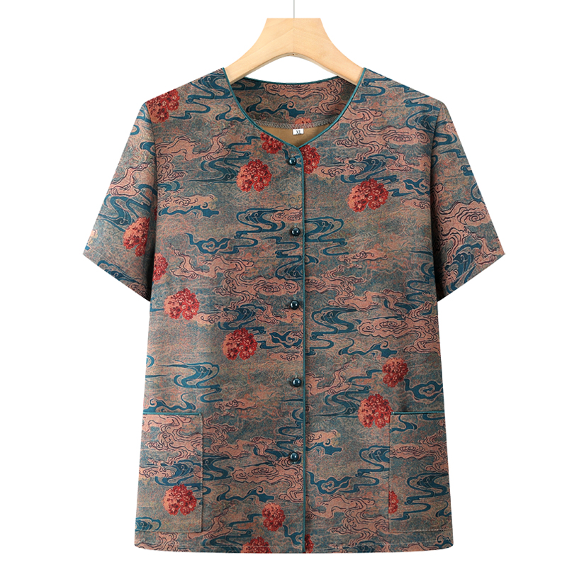 中老年人夏季短袖妈妈装衬衫奶奶夏装开衫上衣洋气老太太薄款衬衣