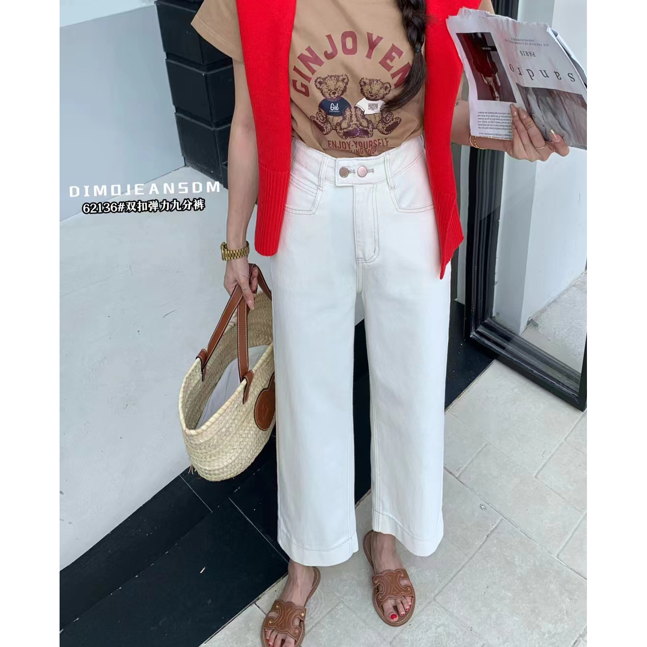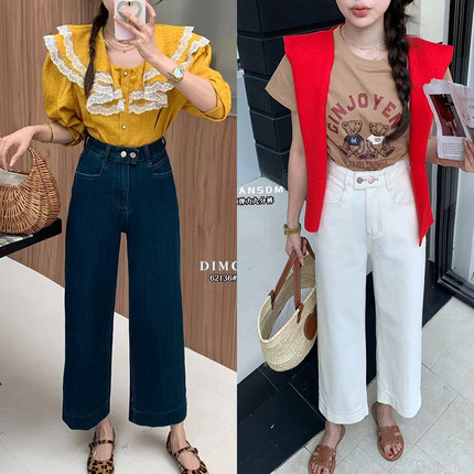 DIMO2024春夏新款宽松小个子窄版阔腿牛仔裤女显瘦白色直筒九分裤