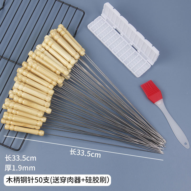 烧烤签子不锈钢带木柄羊肉串烤串肉串签子烧烤用具配件铁签钢签