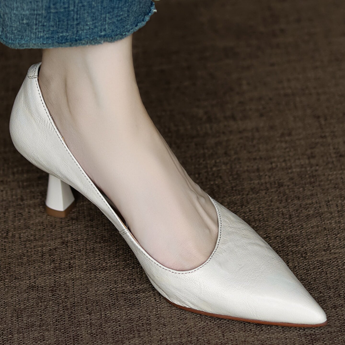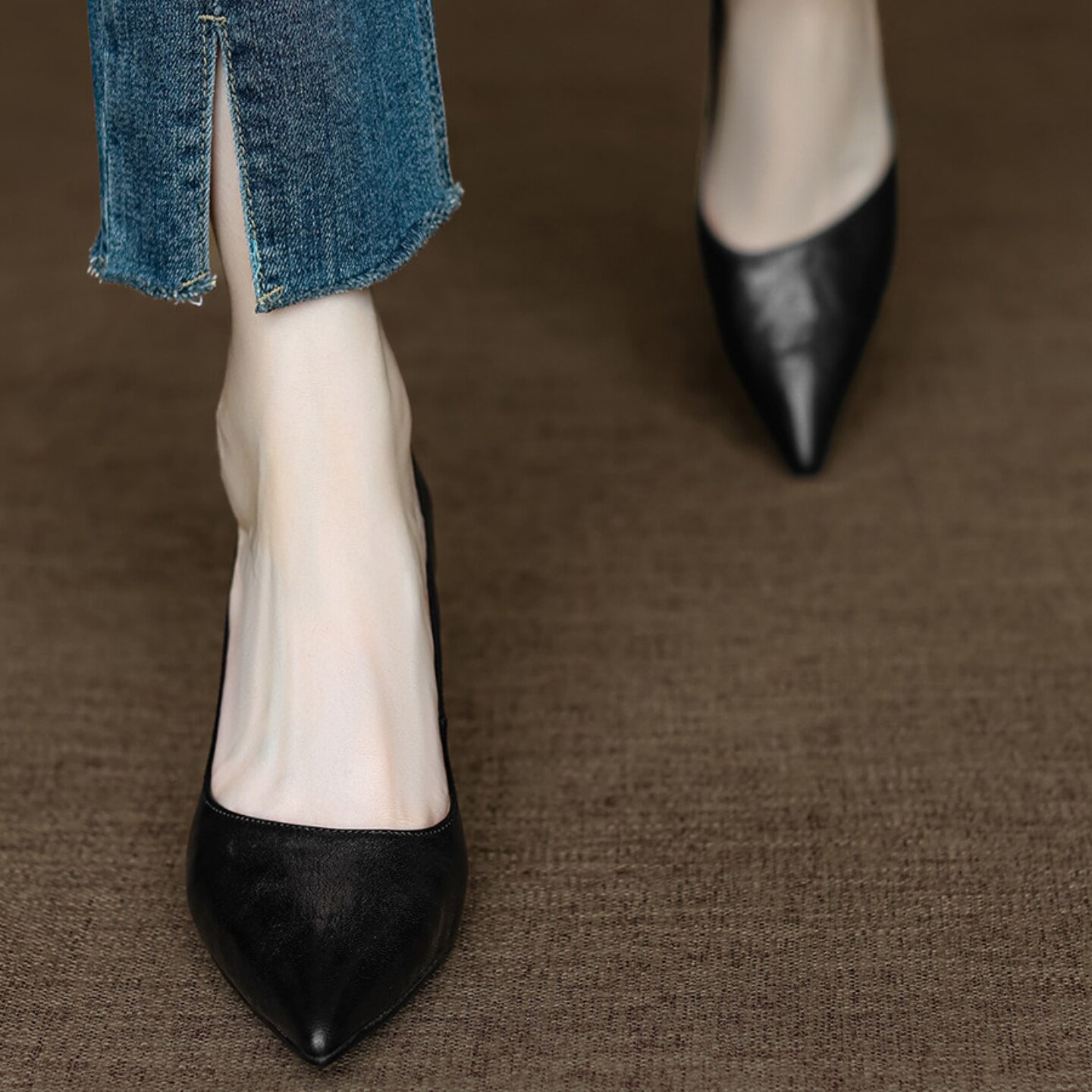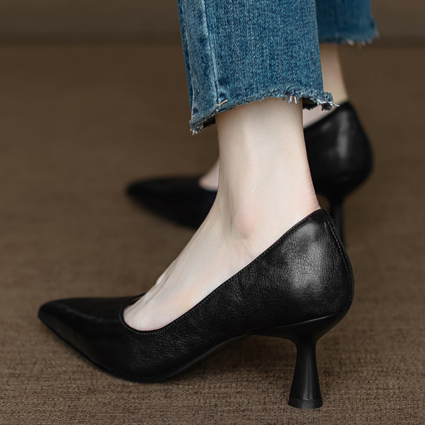 巨巨舒服~!羊皮尖头浅口显瘦单鞋女细跟简约气质职业高跟鞋子