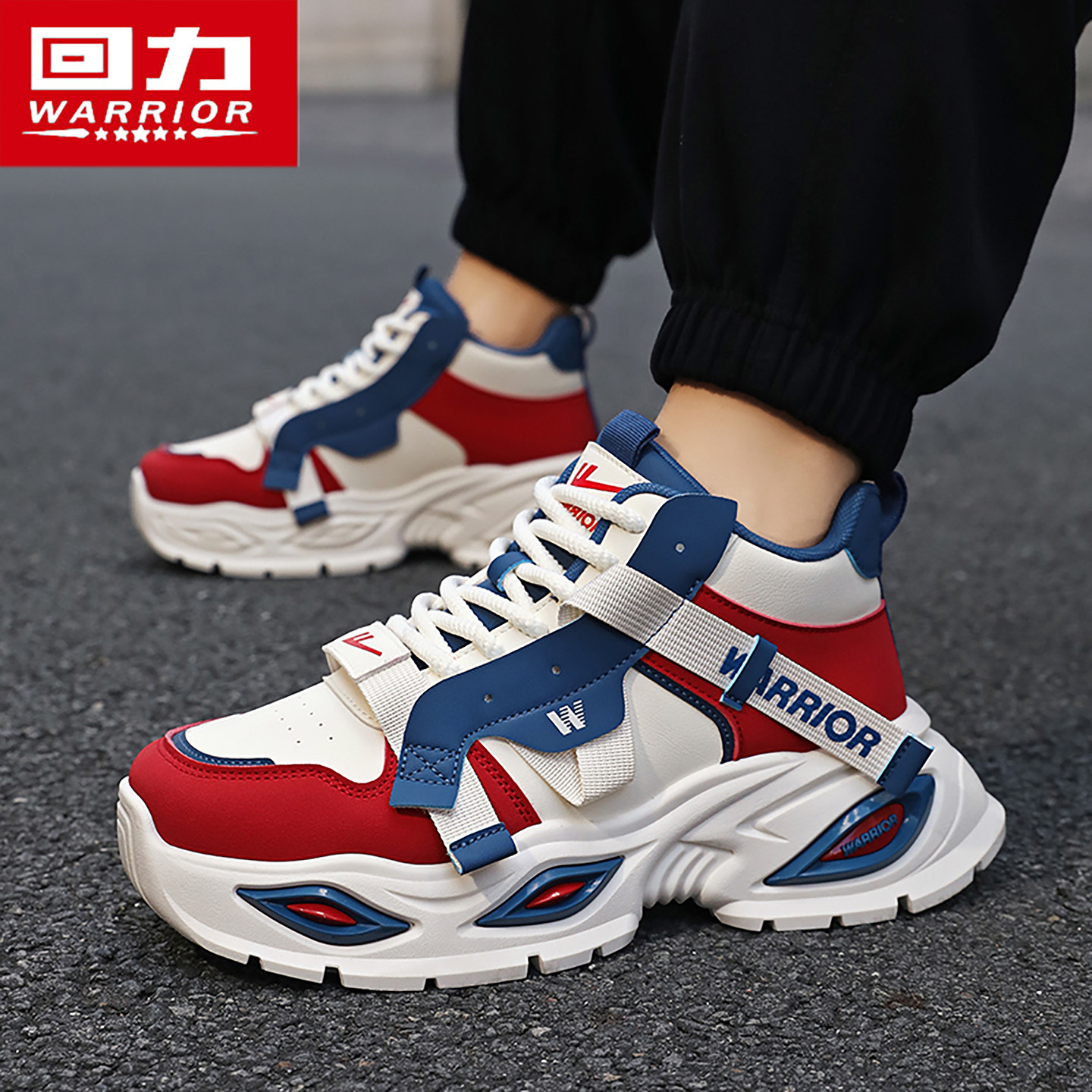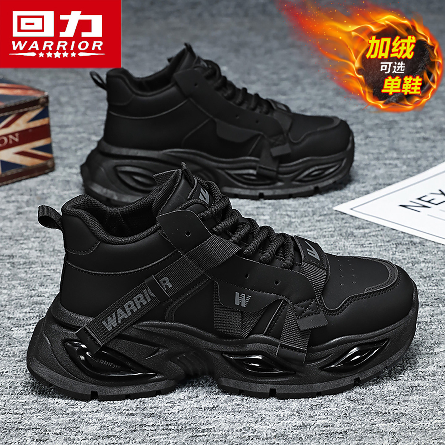 回力运动男鞋冬季2025新款高级感痞帅跑步鞋大码高帮加绒老爹棉鞋
