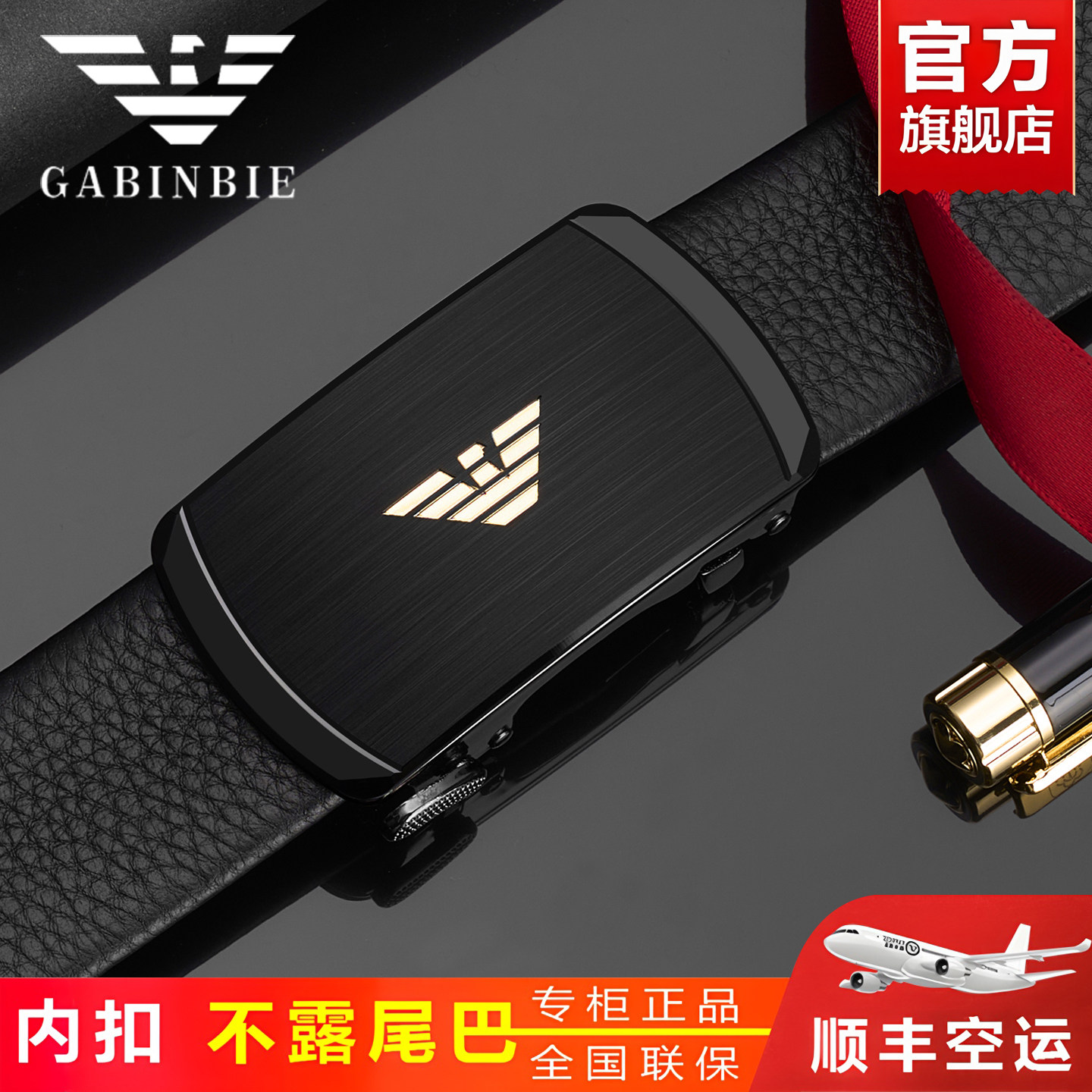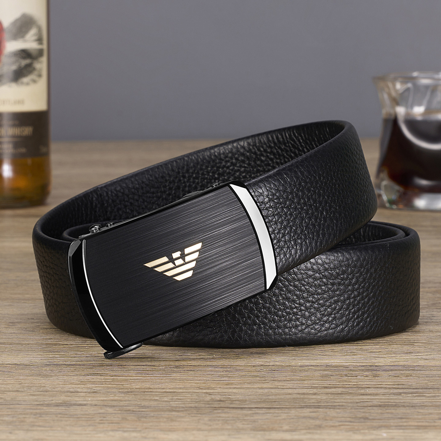 乔奇.阿玛尼男士皮带真皮内扣不露尾巴纯牛皮内穿自动扣裤腰带男