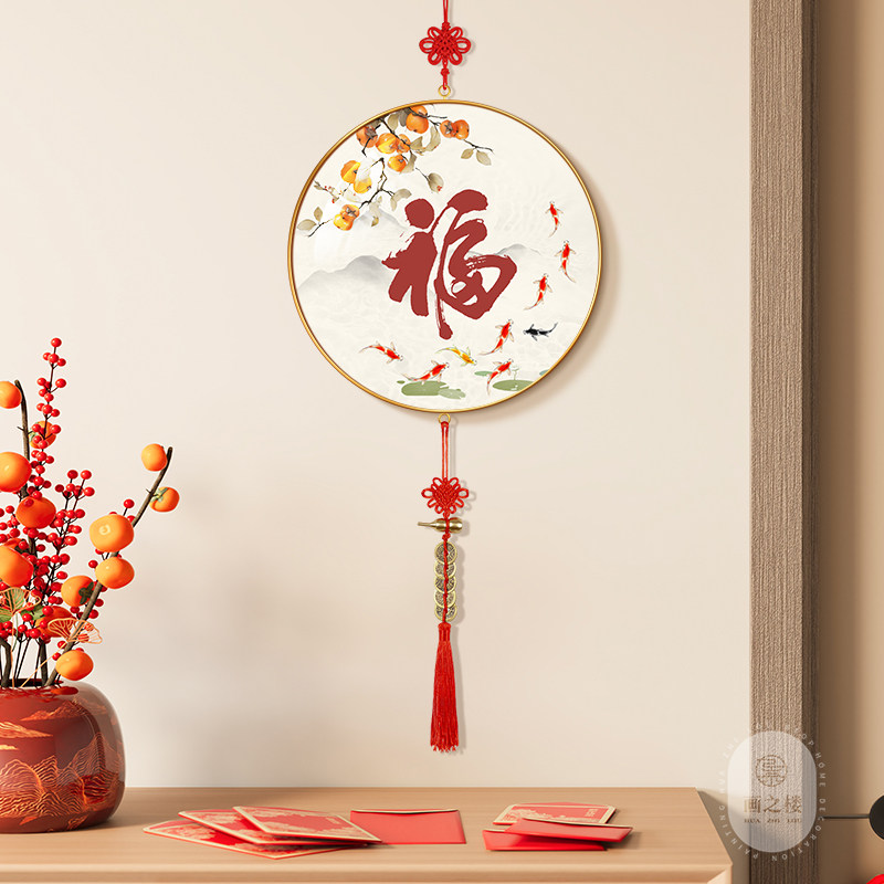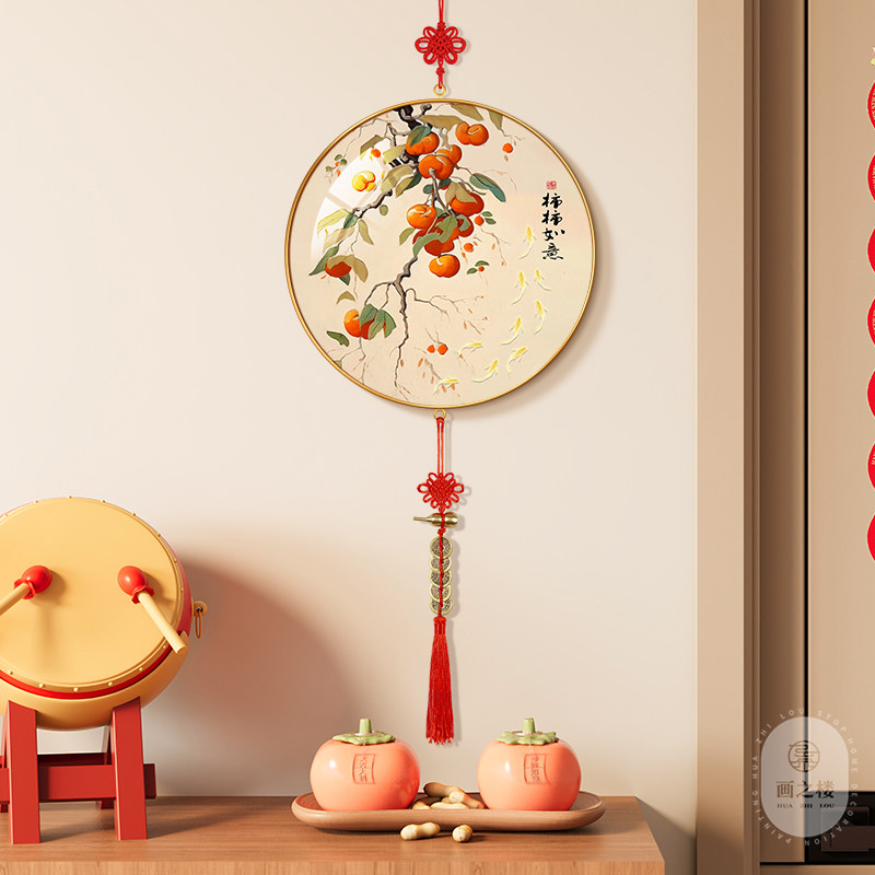 柿柿如意客厅背景墙新年装饰挂件
