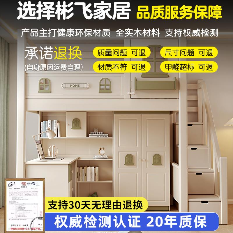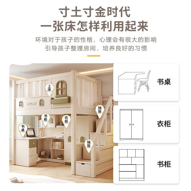 树屋高架床上床下空全实木儿童双层床同宽上下铺双层床高低子母床