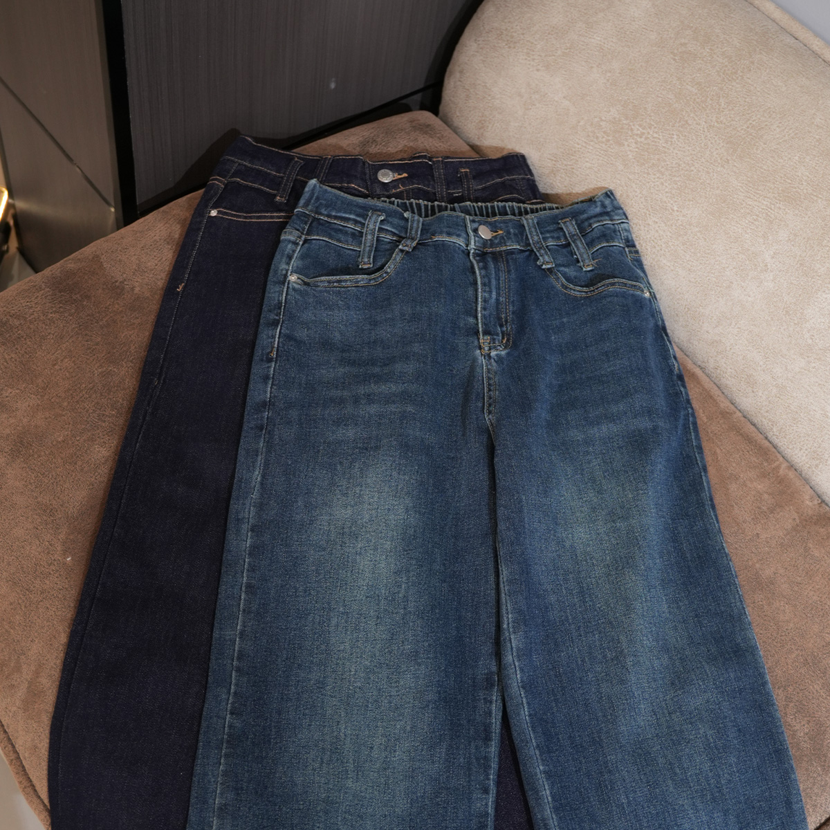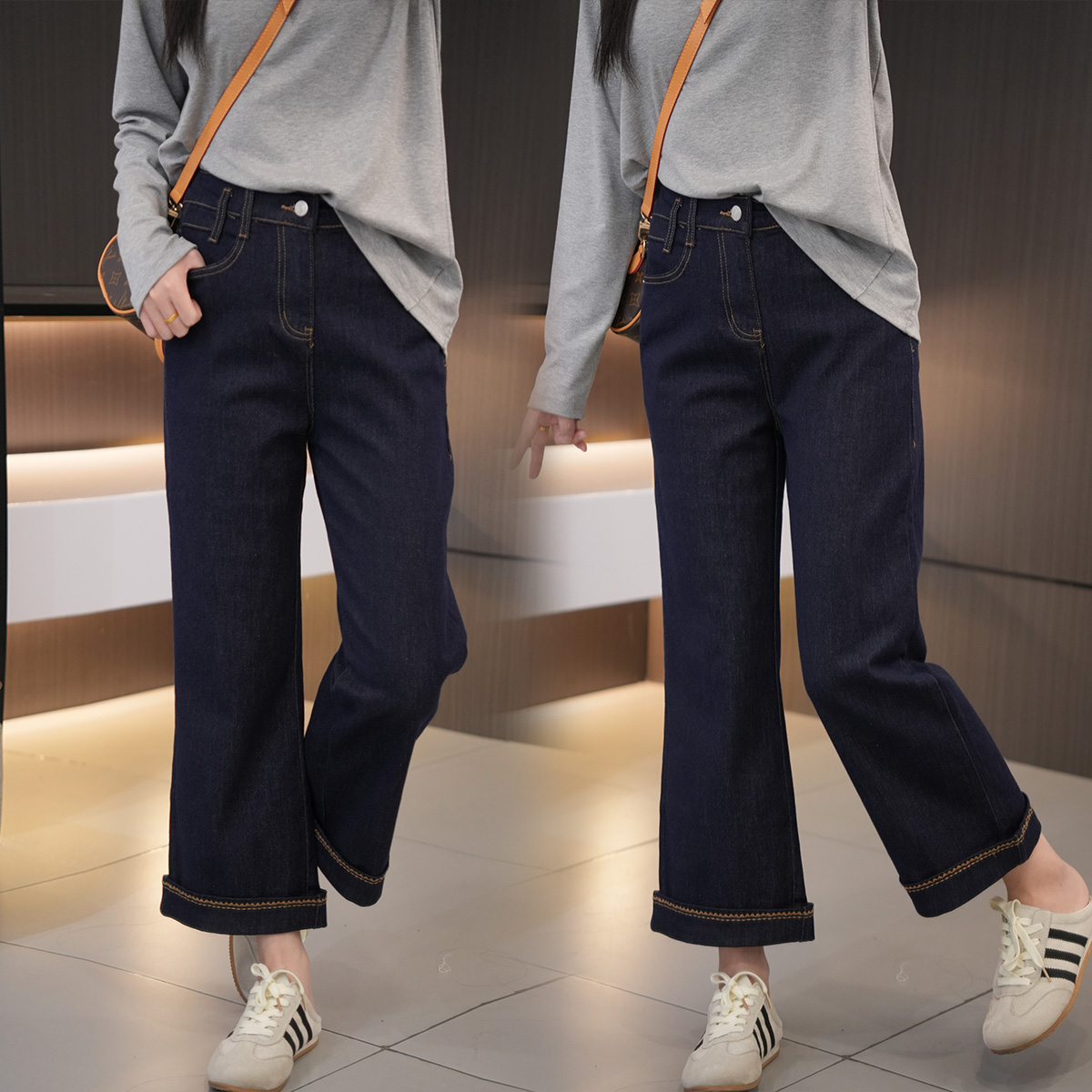 初秋必入设计感卷边直筒牛仔裤