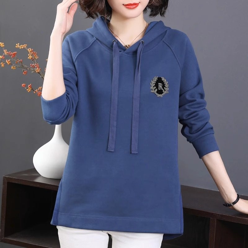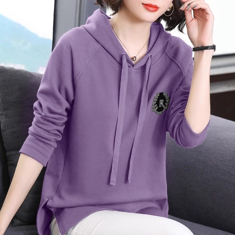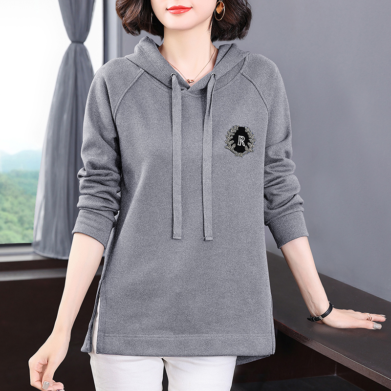 连帽卫衣女装2024春秋新款妈妈长袖上衣大码中长款宽松女士薄外套