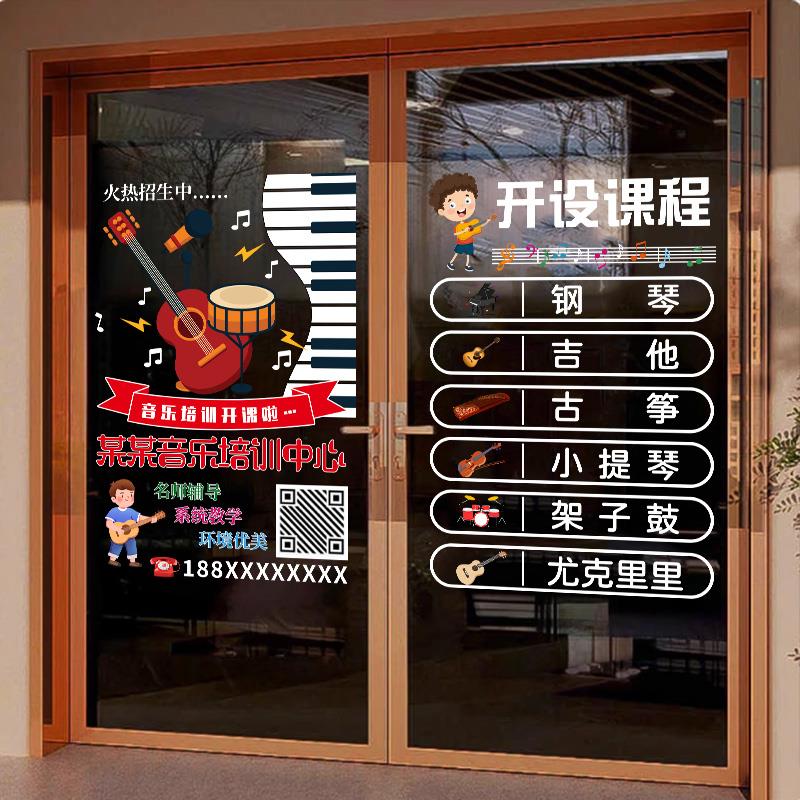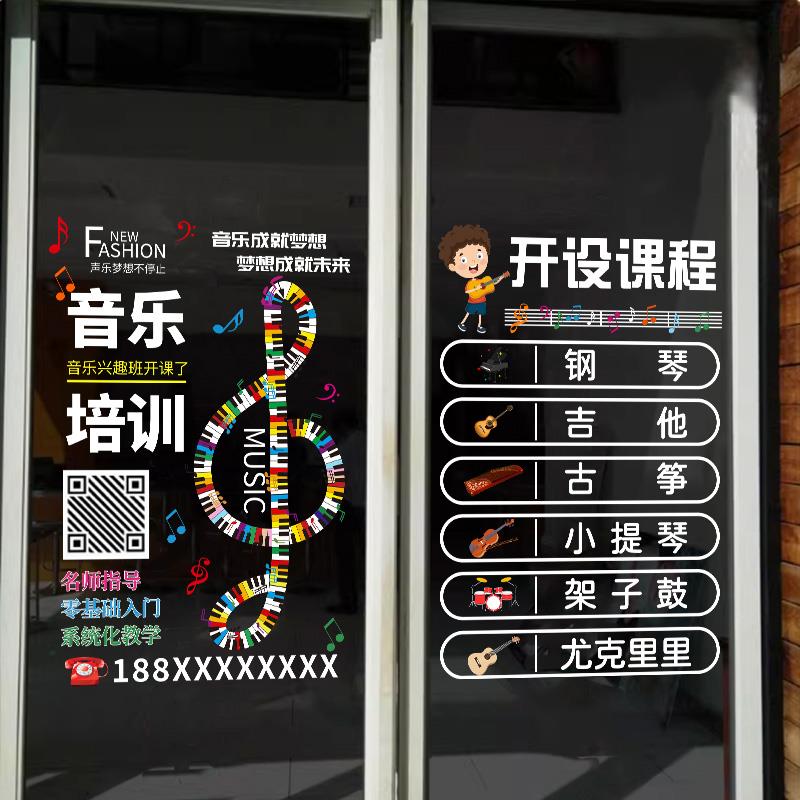 定制音乐培训教室玻璃门橱窗贴广告静电吉他音符钢琴贴纸艺校贴画