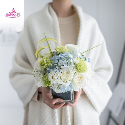 郑州鲜花同城速递玫瑰花桔梗瓶花方钢桌花办公室生日祝福送领导