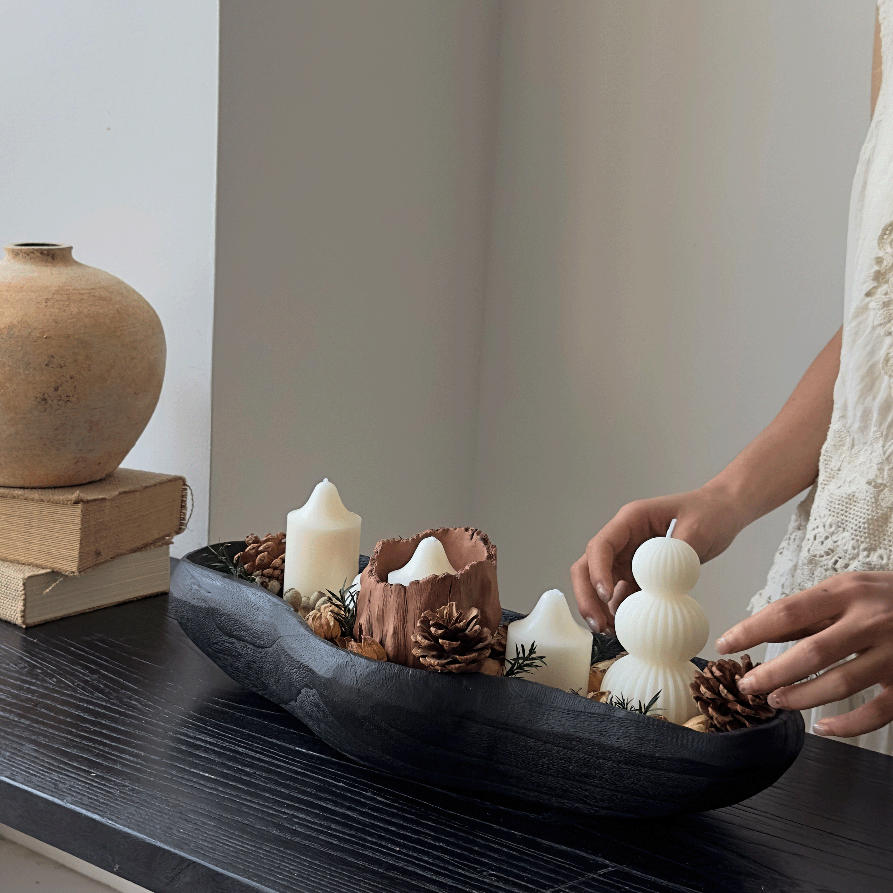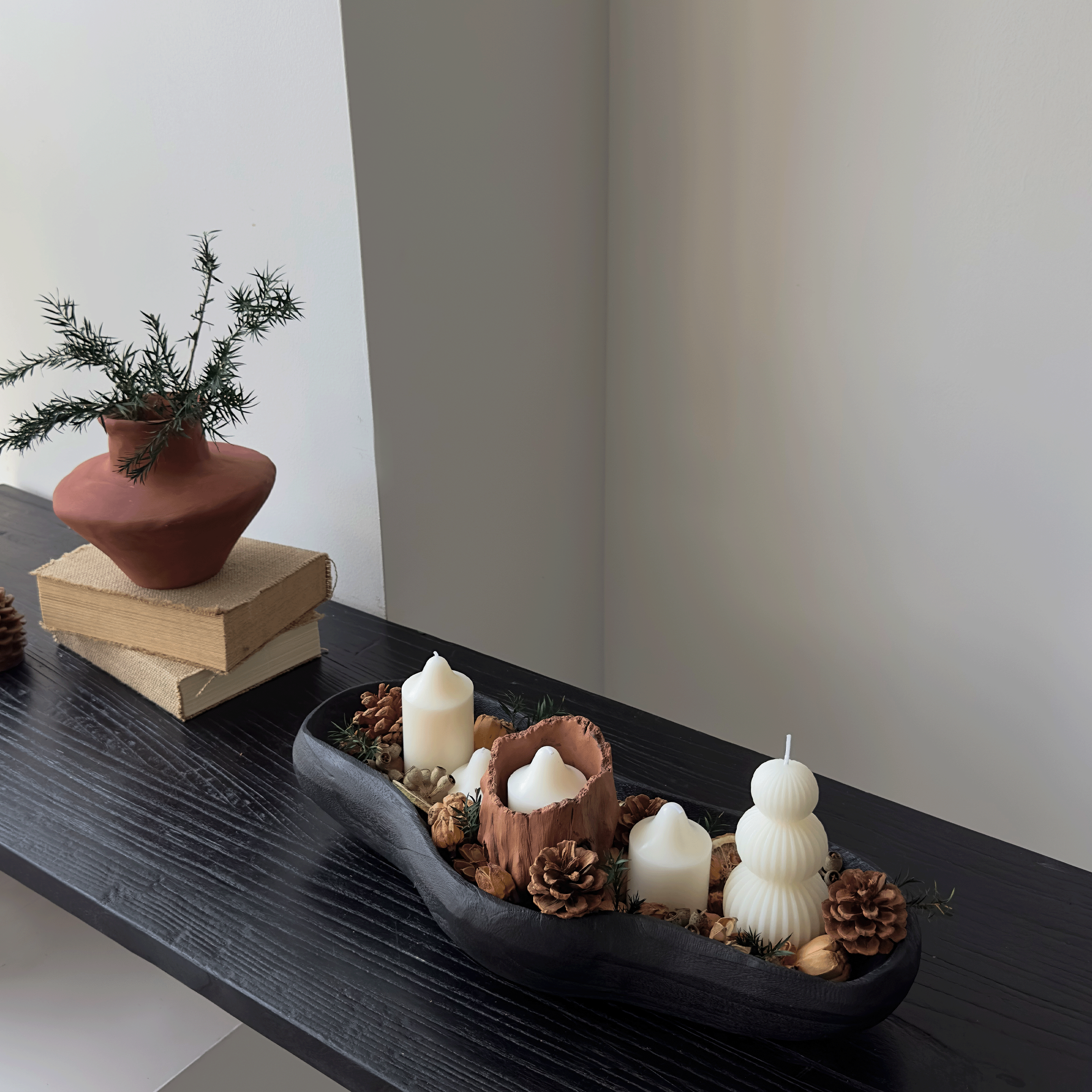 侘寂风黑色木质果盘香薰蜡烛托盘