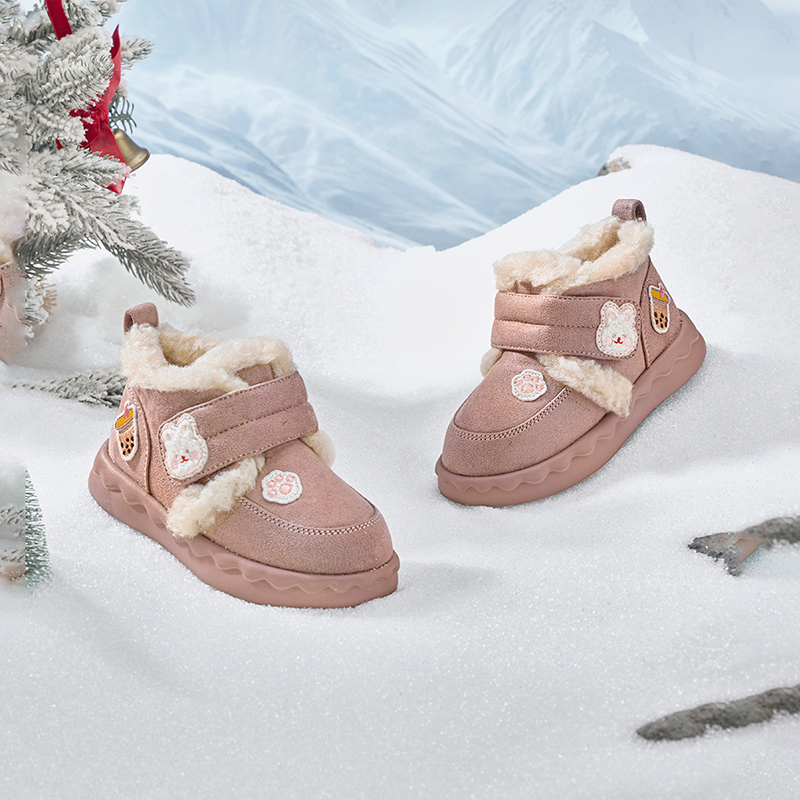 巴拉巴拉童鞋女童雪地靴加绒加厚棉靴冬2025新款短靴可爱绣花靴子