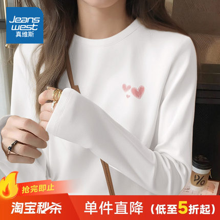 LBP真维斯白色打底衫女宽松纯棉上衣2025新款秋季女士好看长袖t恤
