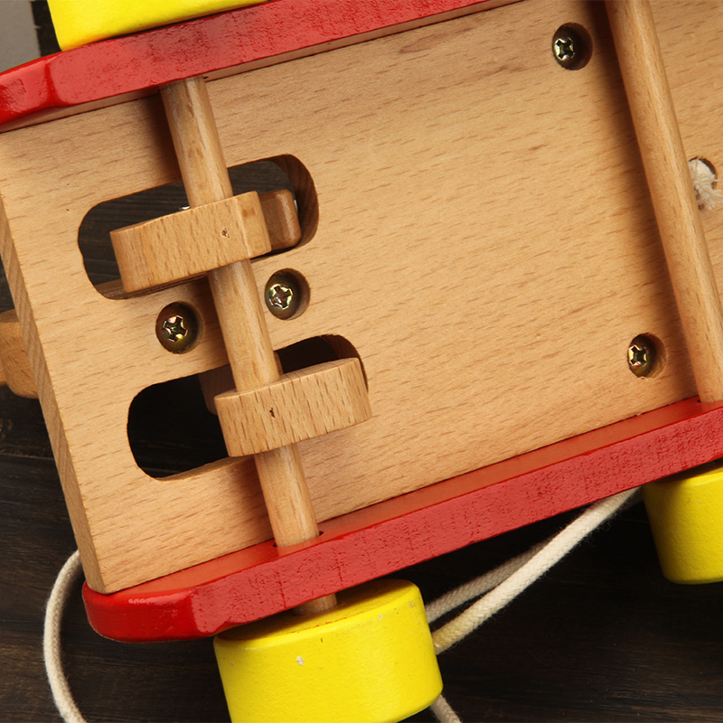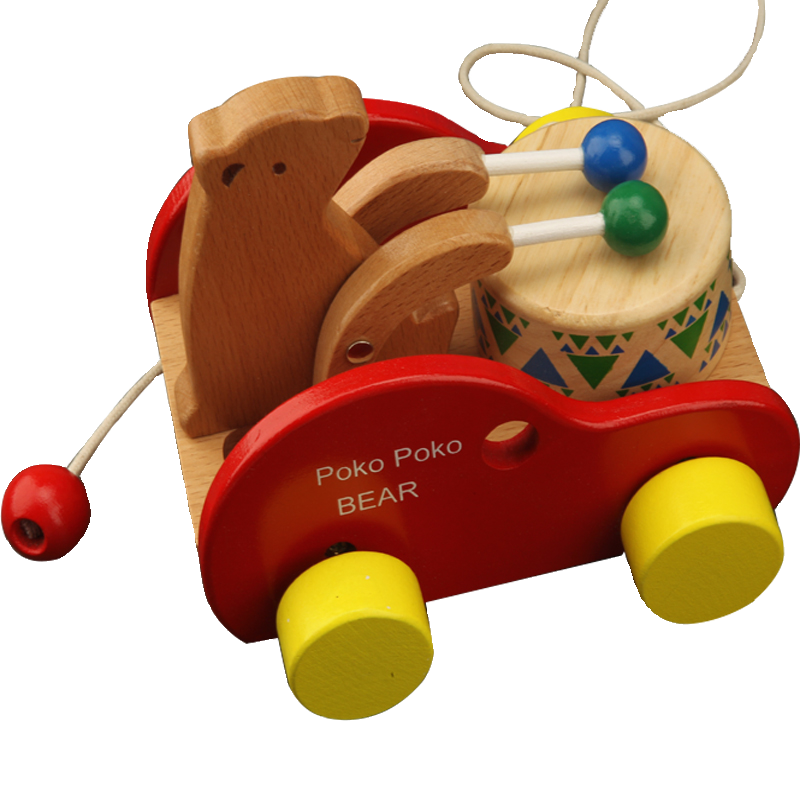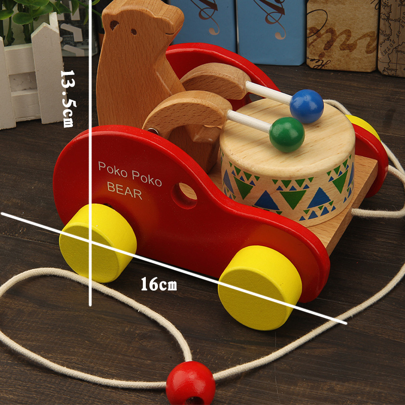 学步拖拉牵引宝宝走步木制早教玩具儿童益智榉木小熊敲鼓拉拉车