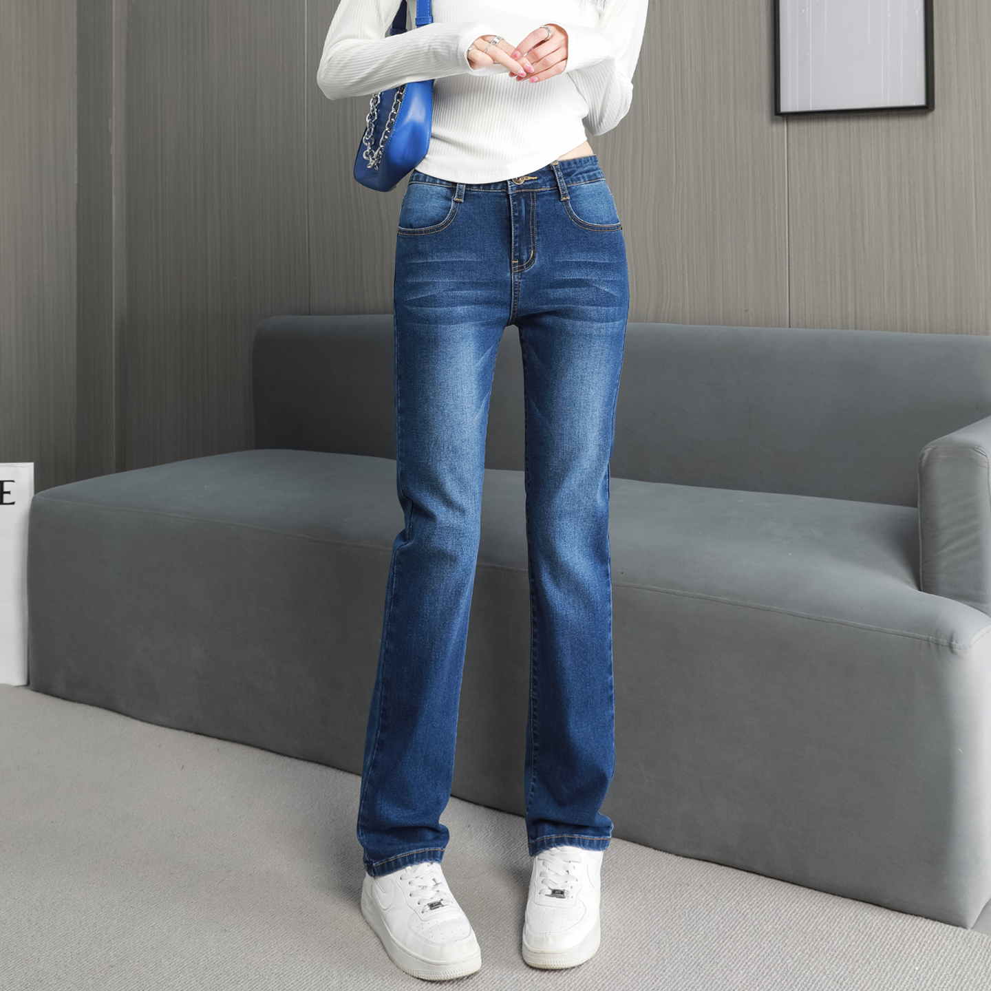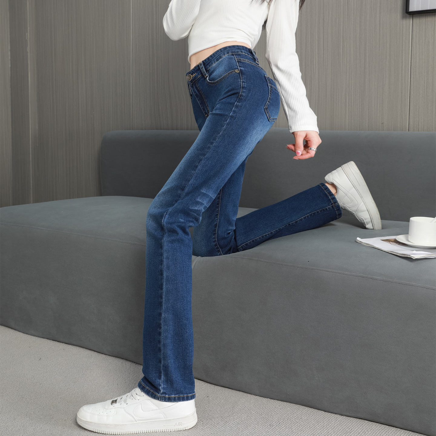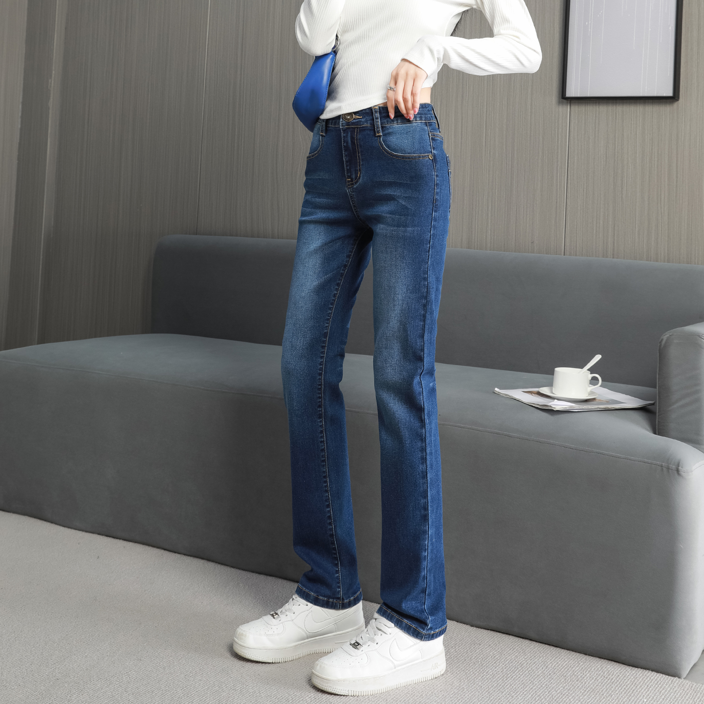 高腰直筒牛仔裤弹力百搭显瘦通勤