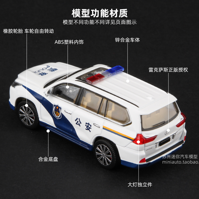麦思迪1/64雷克萨斯LX570公安版模型合金仿真收藏车模警用车模型