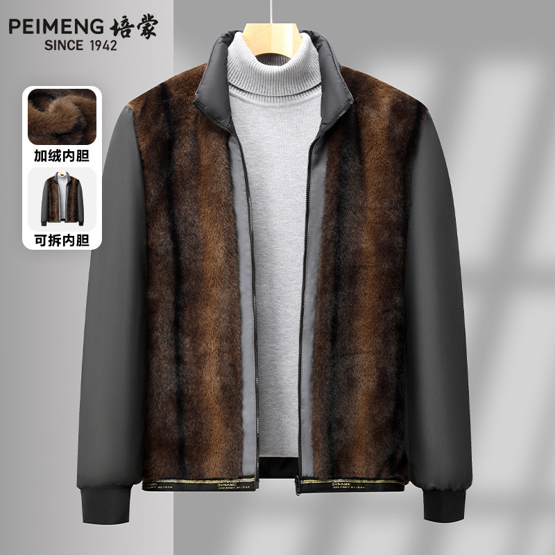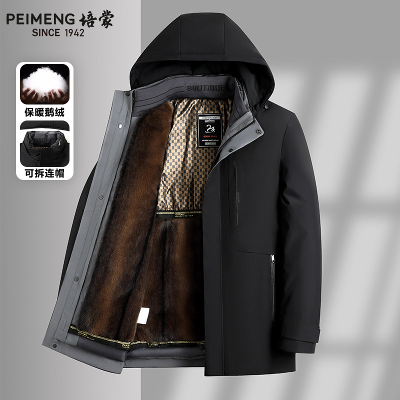 培蒙冬季加绒加厚羽绒服男士可拆卸内胆爸爸装中长款防风保暖外套