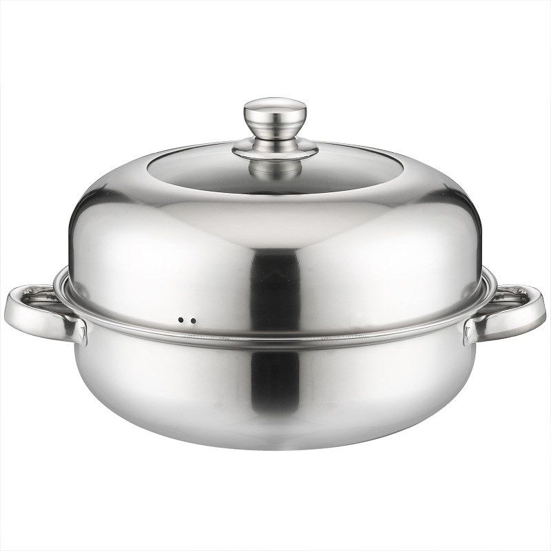 加厚不锈钢锅汤蒸锅电磁炉火锅28cm蒸鱼蒸汤锅双耳汤锅具礼品
