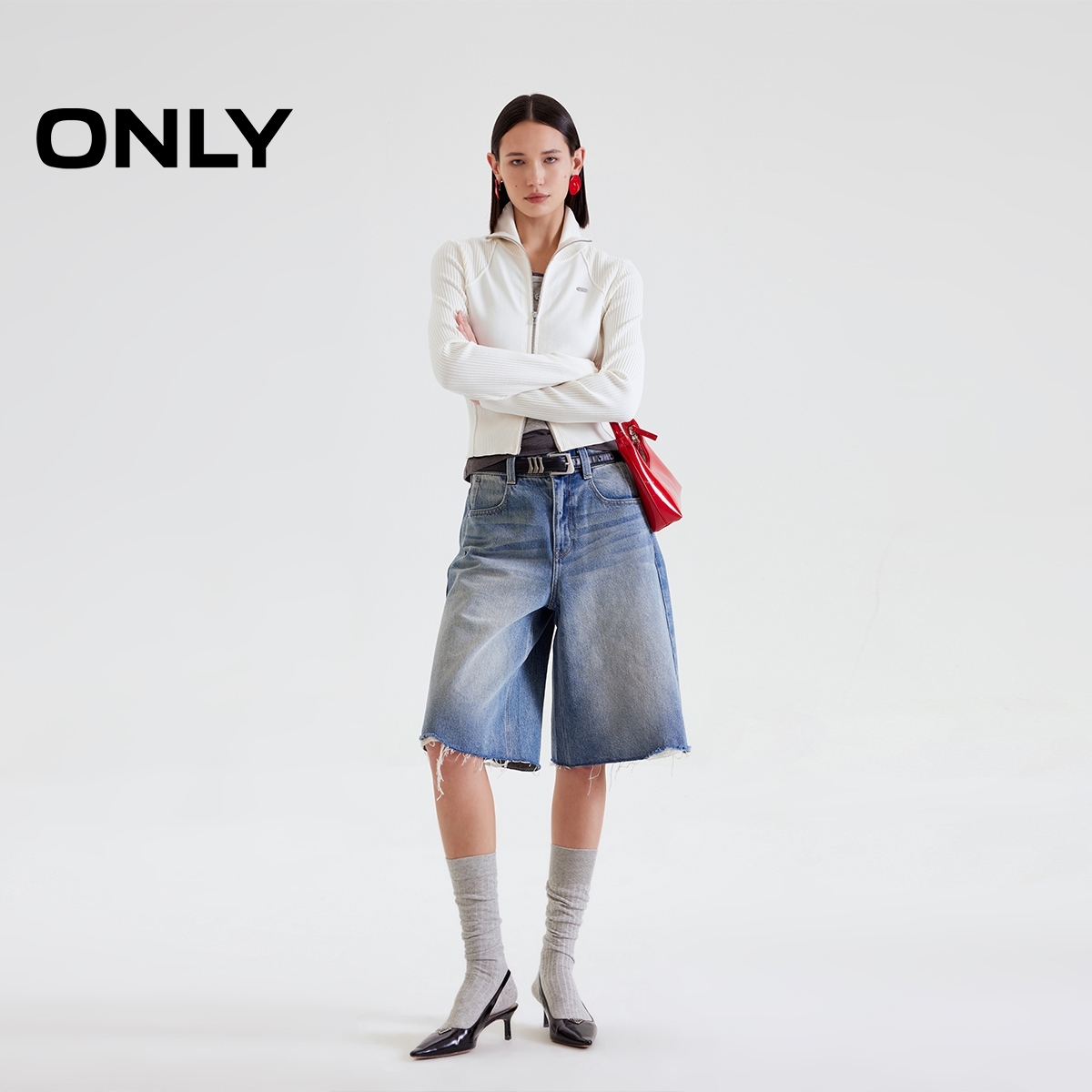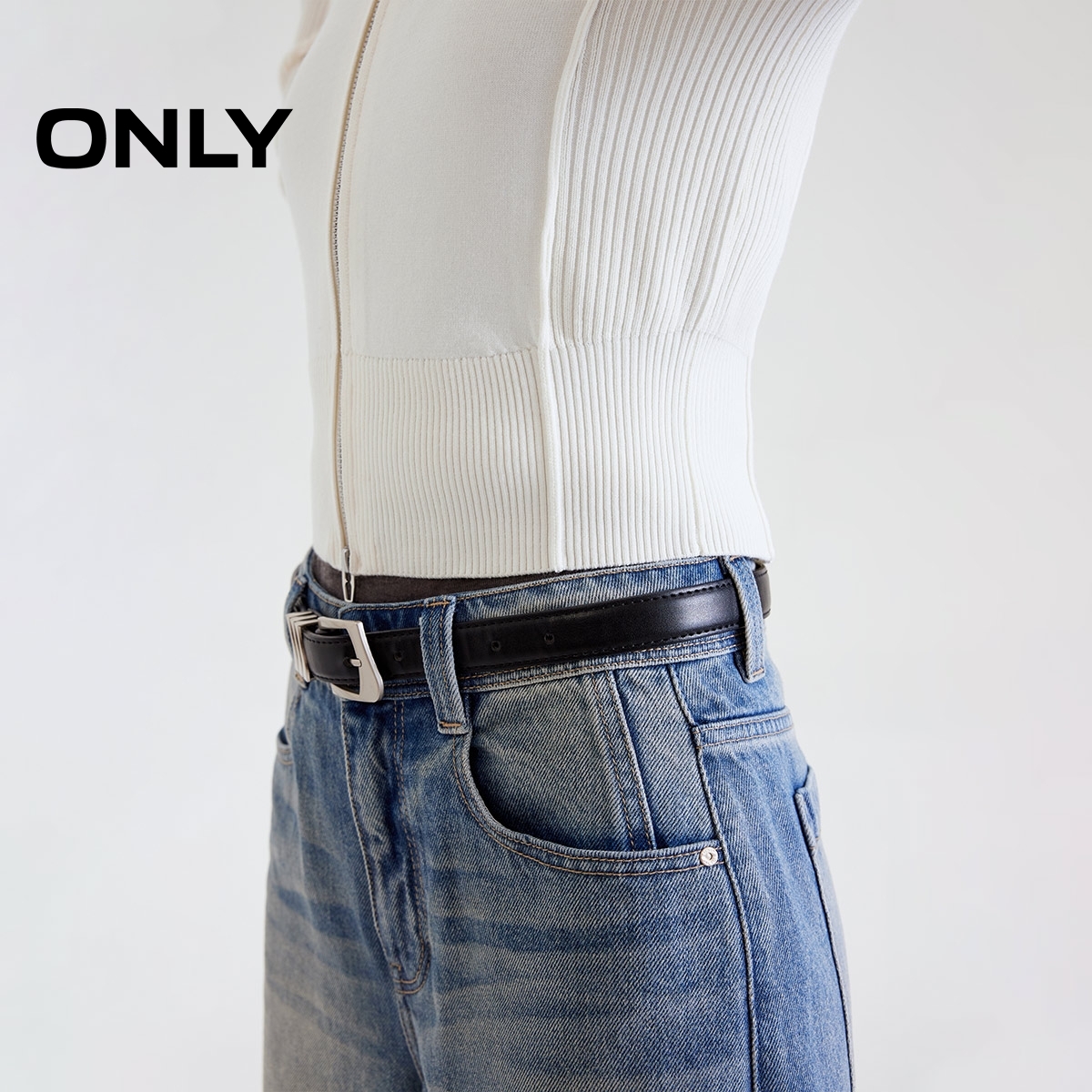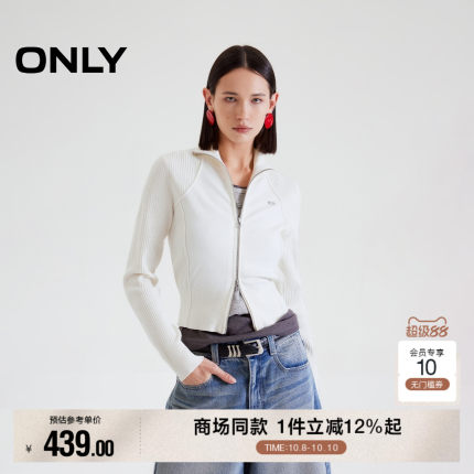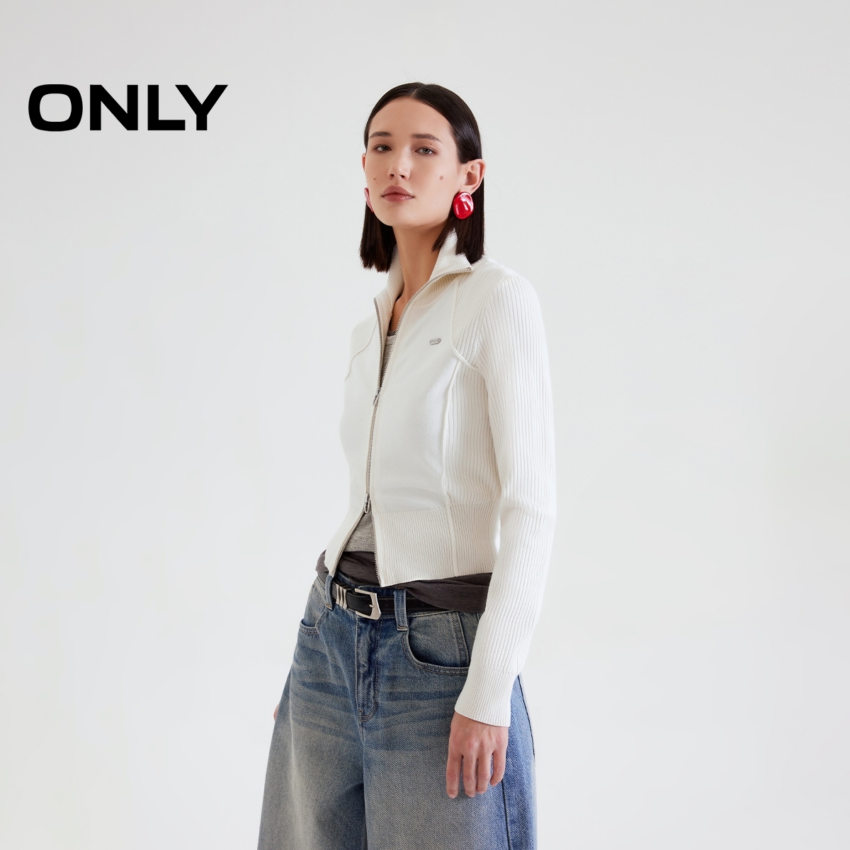 ONLY2025秋季新款百搭保暖小高领显瘦拼接拉链短款开衫针织衫女