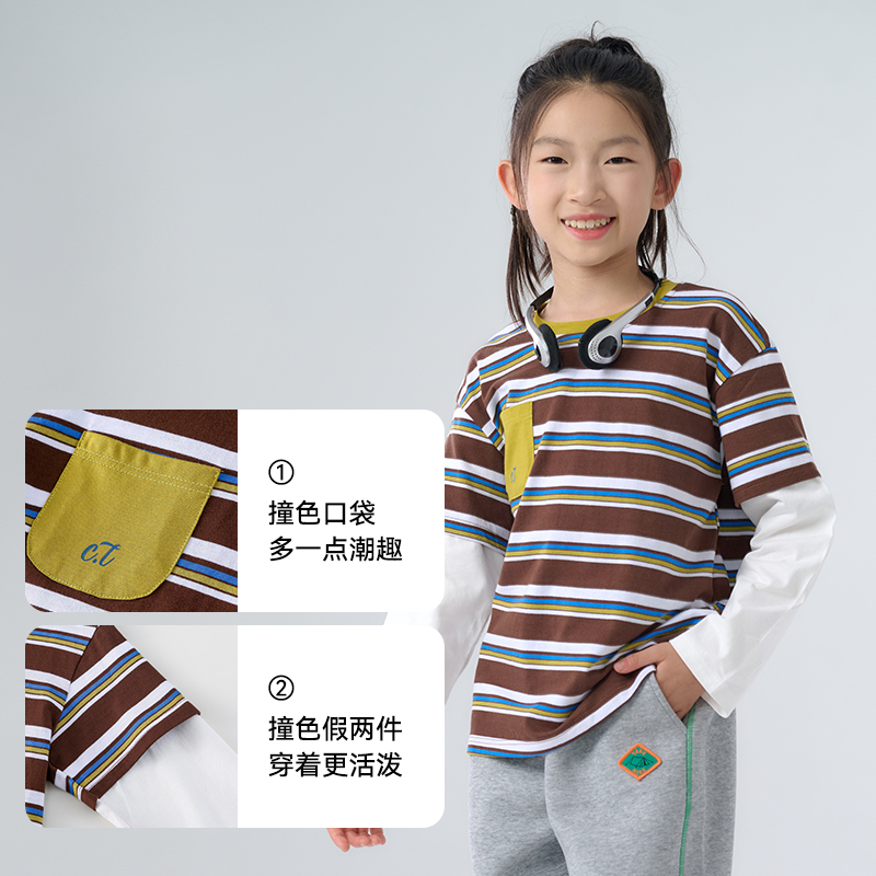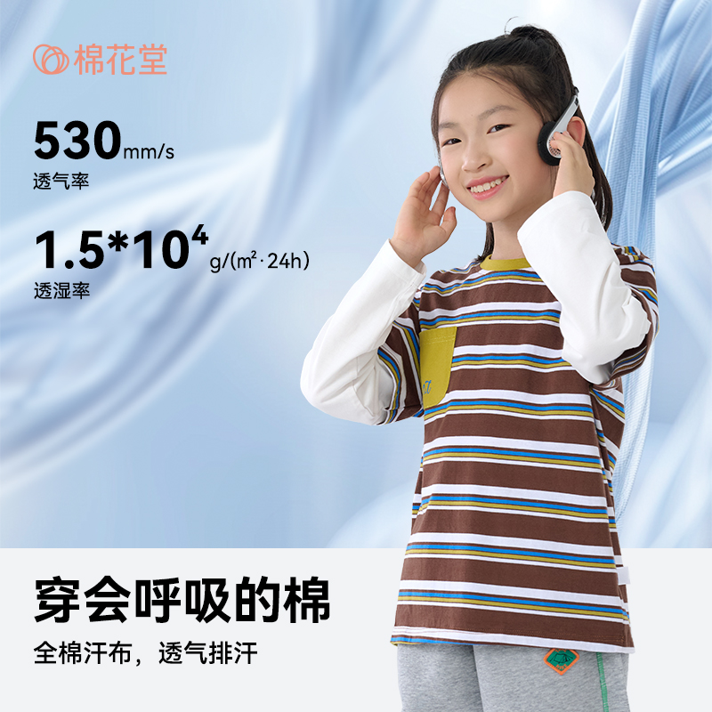 【100%棉棉T】棉花堂儿童T恤长袖纯棉男童上衣女童打底衫中大童