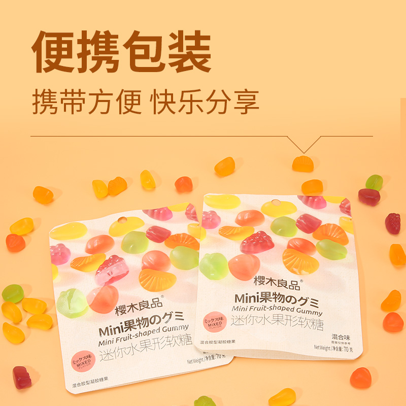 樱木良品|迷你水果形软糖70g3D造型混合味果汁QQ橡皮糖果零食