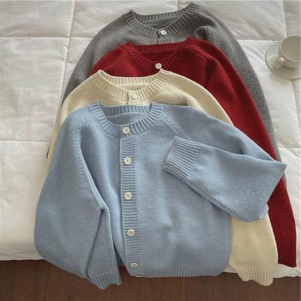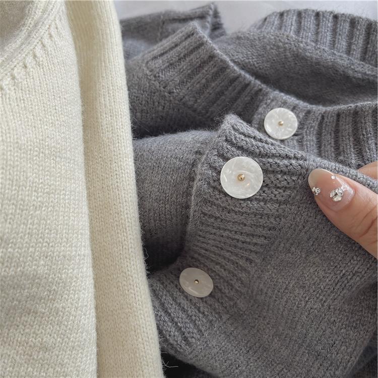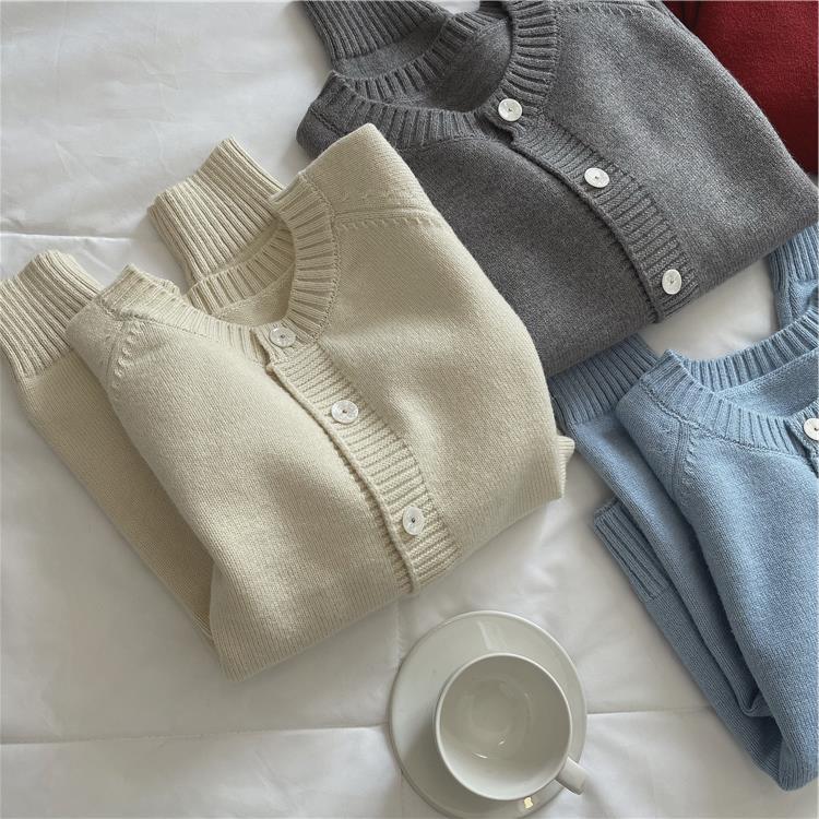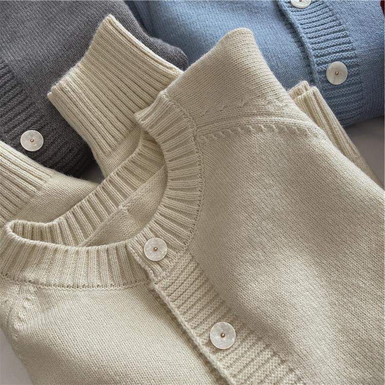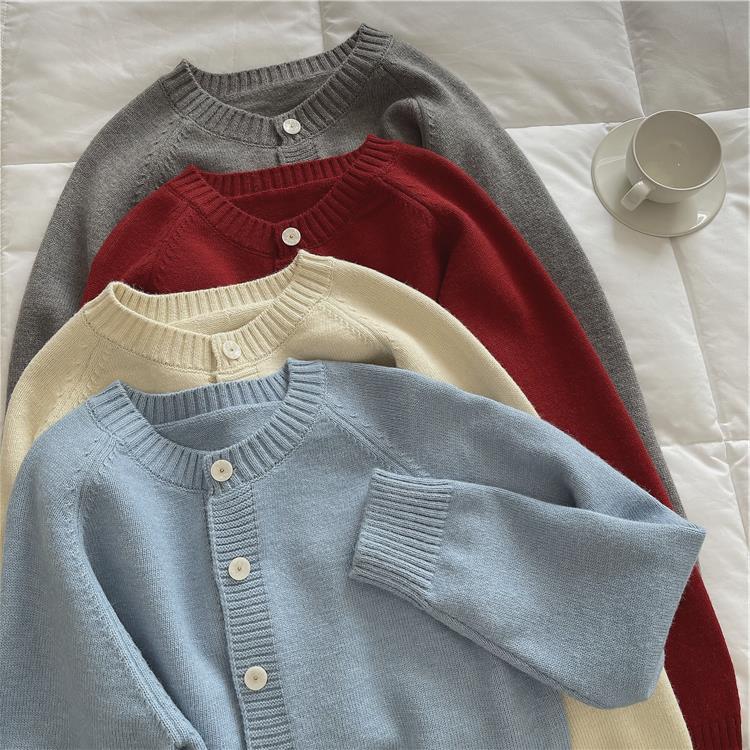 2023春季新款百搭洋气圆领毛衣外套精致温柔风针织开衫女短款上衣