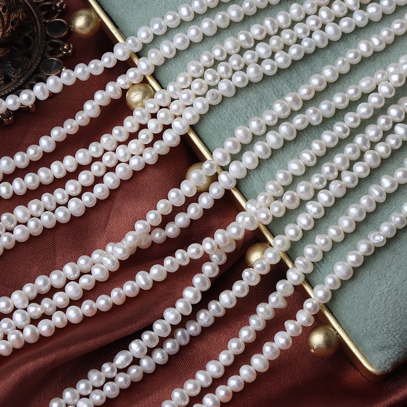 4-4.5mm冲头天然淡水珍珠裸珠diy手工穿珠材料一串长约37cm