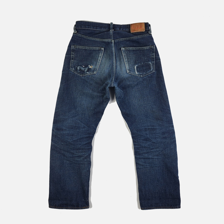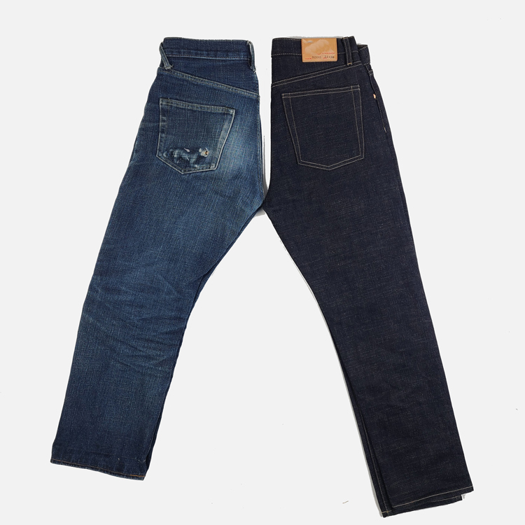 060自制18OZ 特深蓝 拼卡其底色双染 微锥 原色养牛 牛仔裤