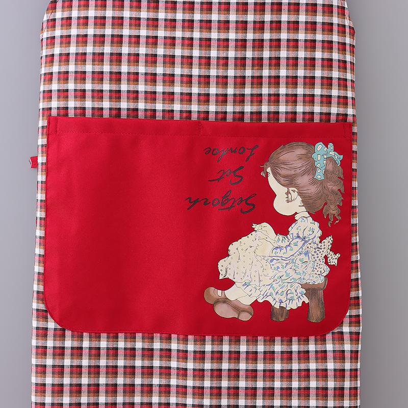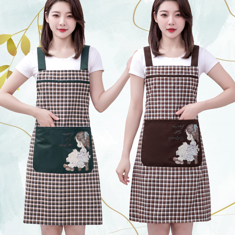 纯棉格子女孩大口袋围裙双肩背带薄款耐磨上班家用通用围腰服务员