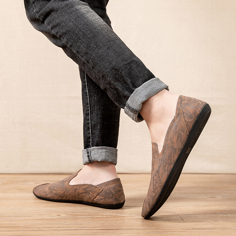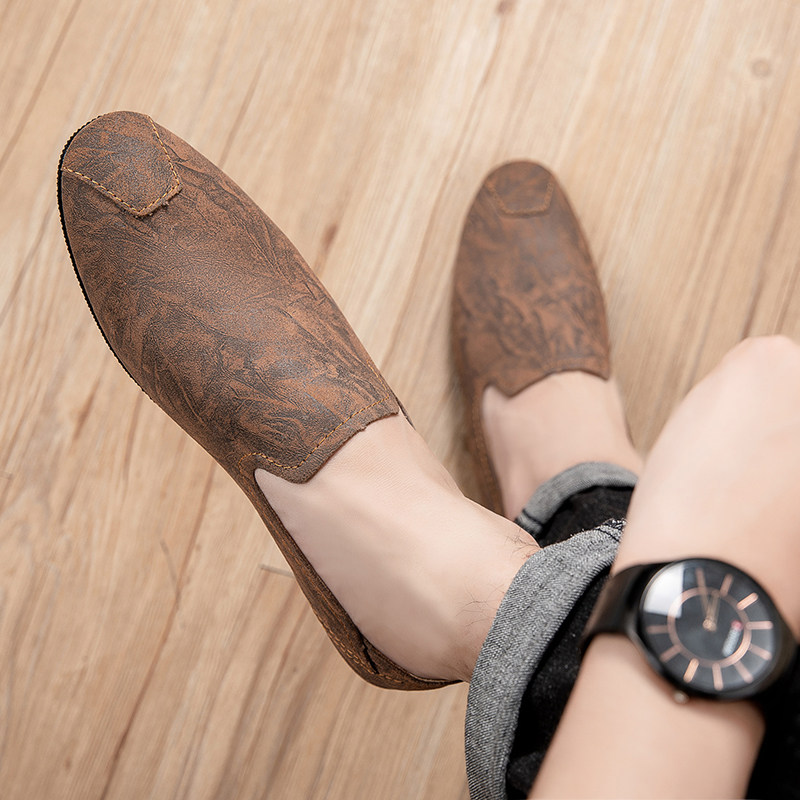 尖头休闲男皮鞋2025新款轻便软低真皮小码时尚潮流一脚蹬豆豆鞋男
