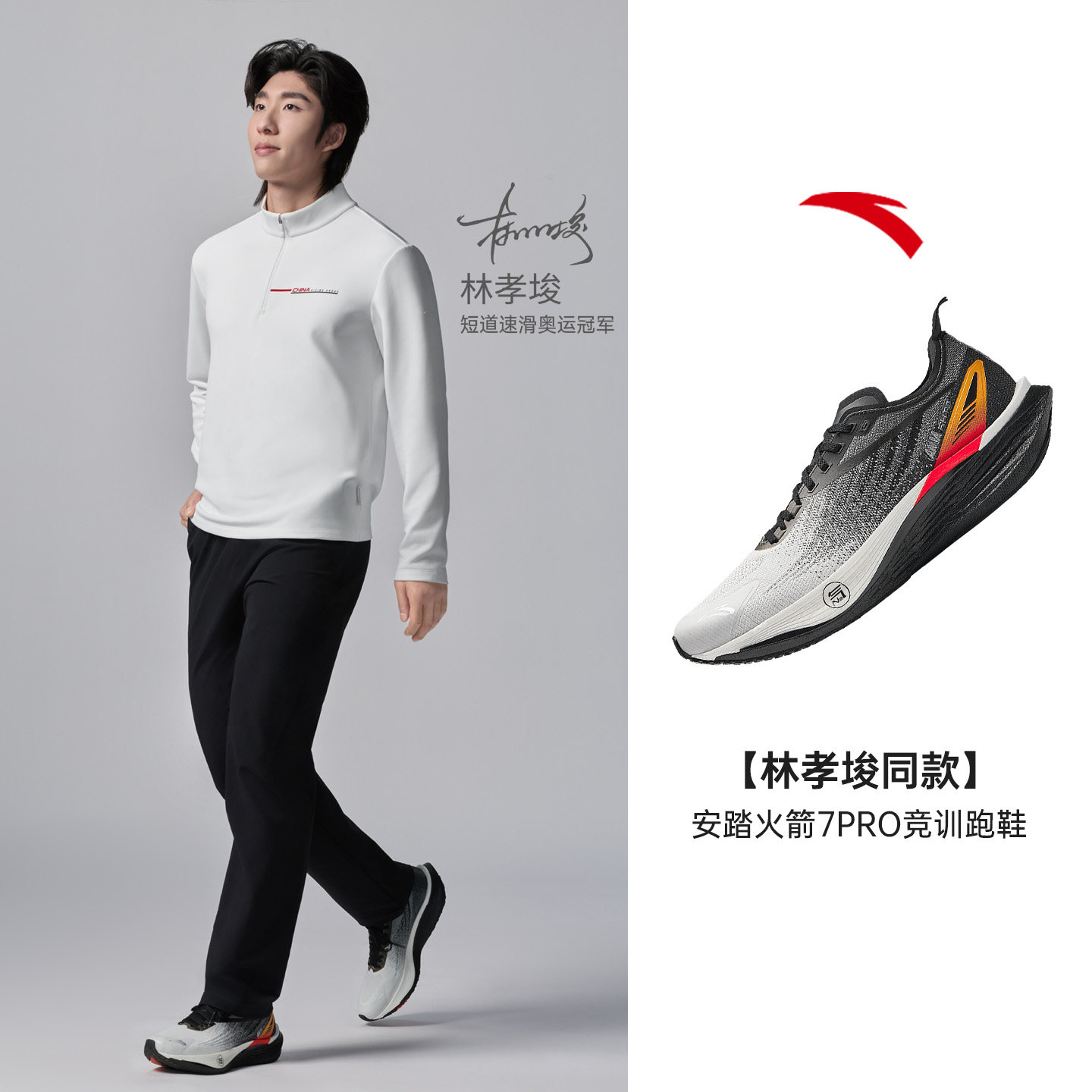 林孝埈同款安踏火箭7代PRO氮科技回弹缓震防滑跑步鞋男 112545580