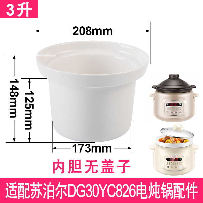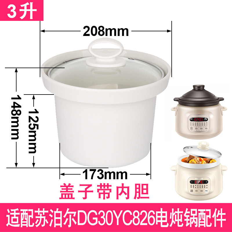 适配苏泊尔DG30YC826电炖锅3升L煮BB粥熬汤煲白陶瓷内胆盖子配件