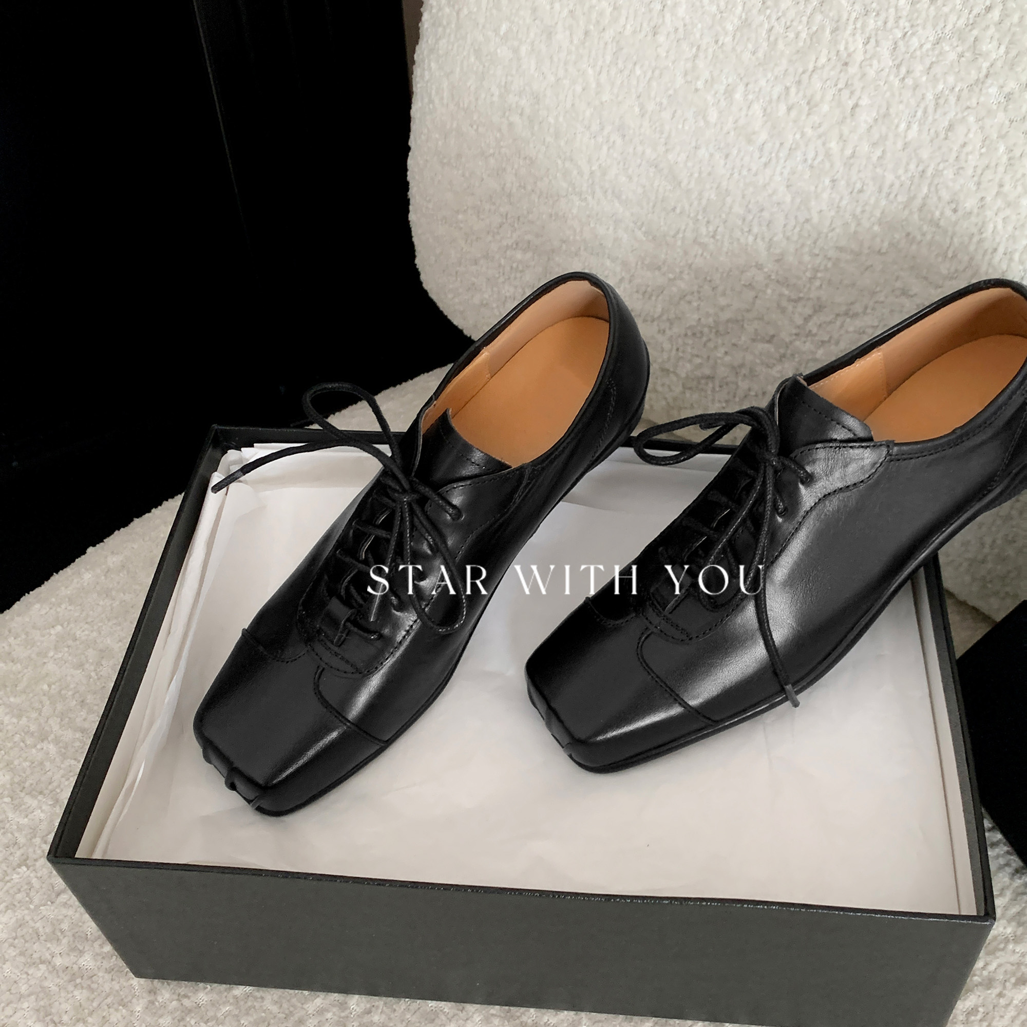【STAR】文艺复古方头系带英伦风百搭通勤芭蕾风深口乐福鞋3cm