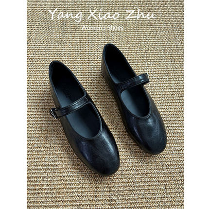 羊皮版~复古一字带玛丽珍鞋女2025新款浅口平底圆头法式芭蕾舞鞋