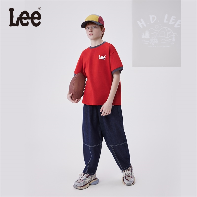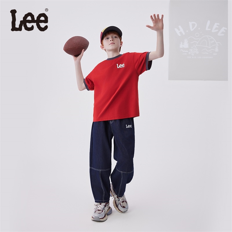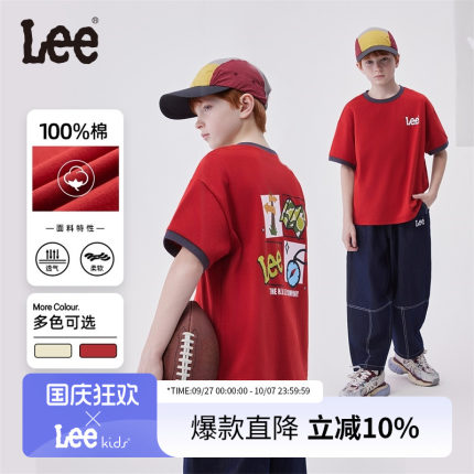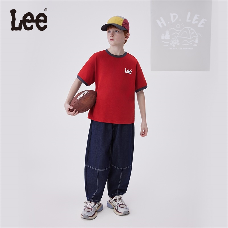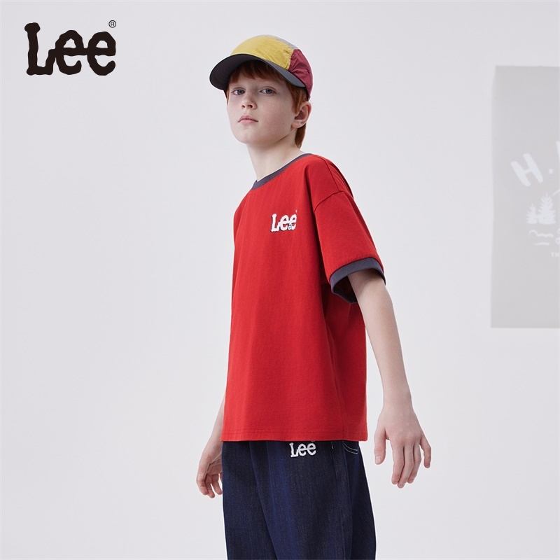 lee男女童装番茄红2025年夏季休闲短袖T恤薄款上衣小孩衣服