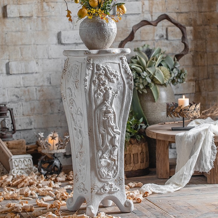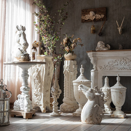欧式复古壁炉石膏雕像罗马柱落地装饰品拍摄道具石膏柱雕塑大柱子