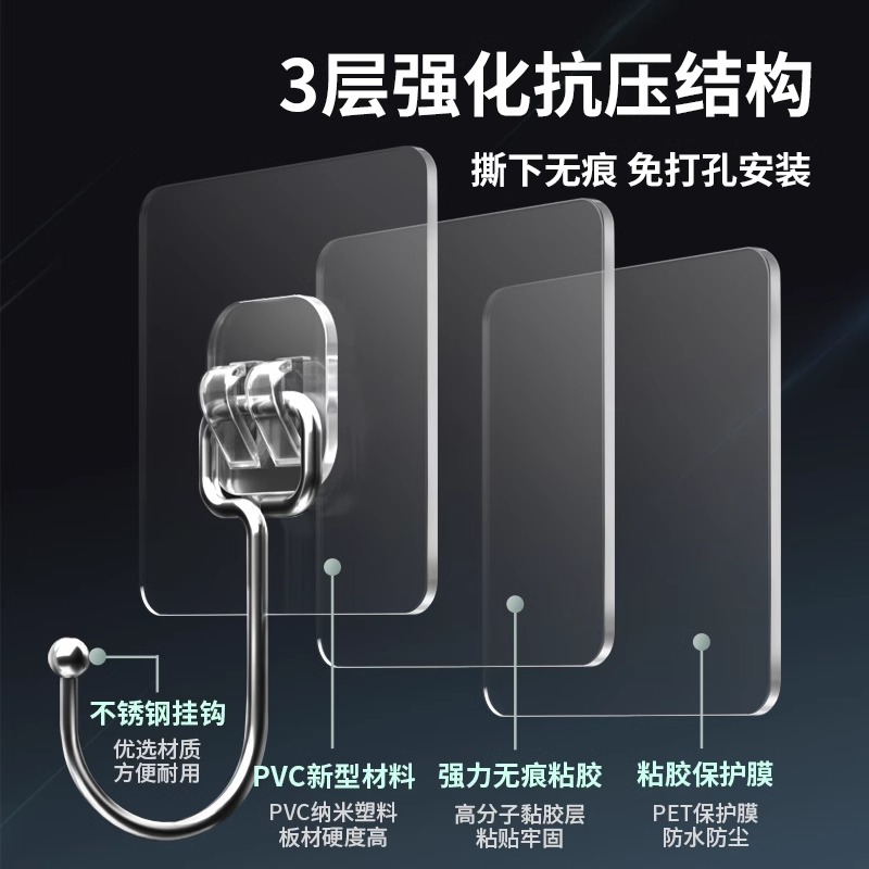 大挂钩强力粘胶墙壁挂墙上承重透明无痕轻奢钩子贴墙面免打孔粘钩