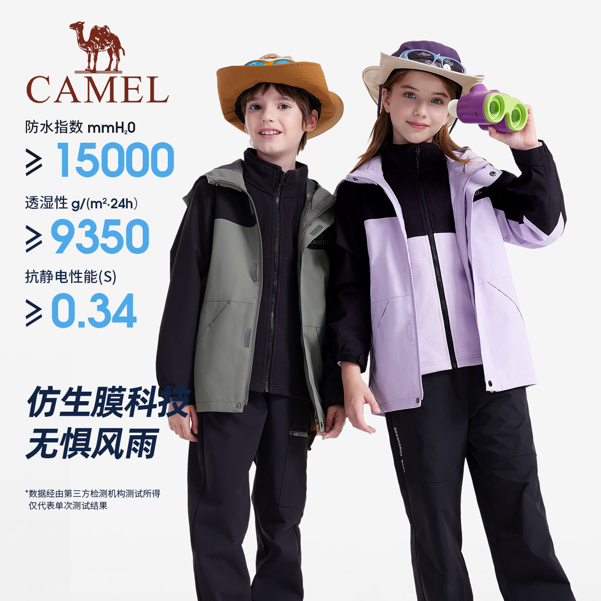 骆驼儿童冲锋衣秋冬三合一防风防水中大童风衣男女童外套滑雪服