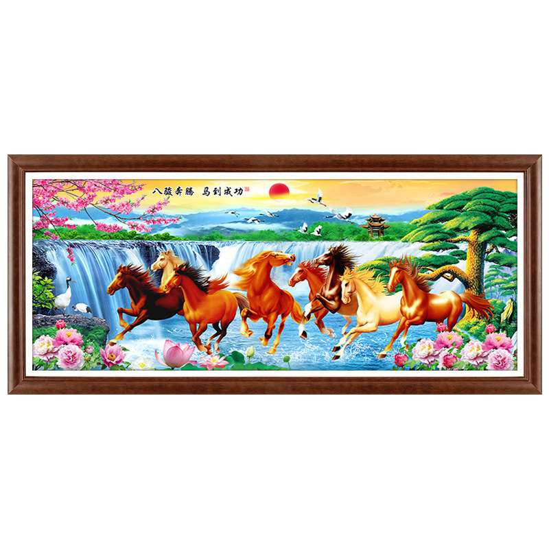 新款5D钻石画满钻客厅钻石绣八匹马八骏图马到成功贴钻十字绣大幅