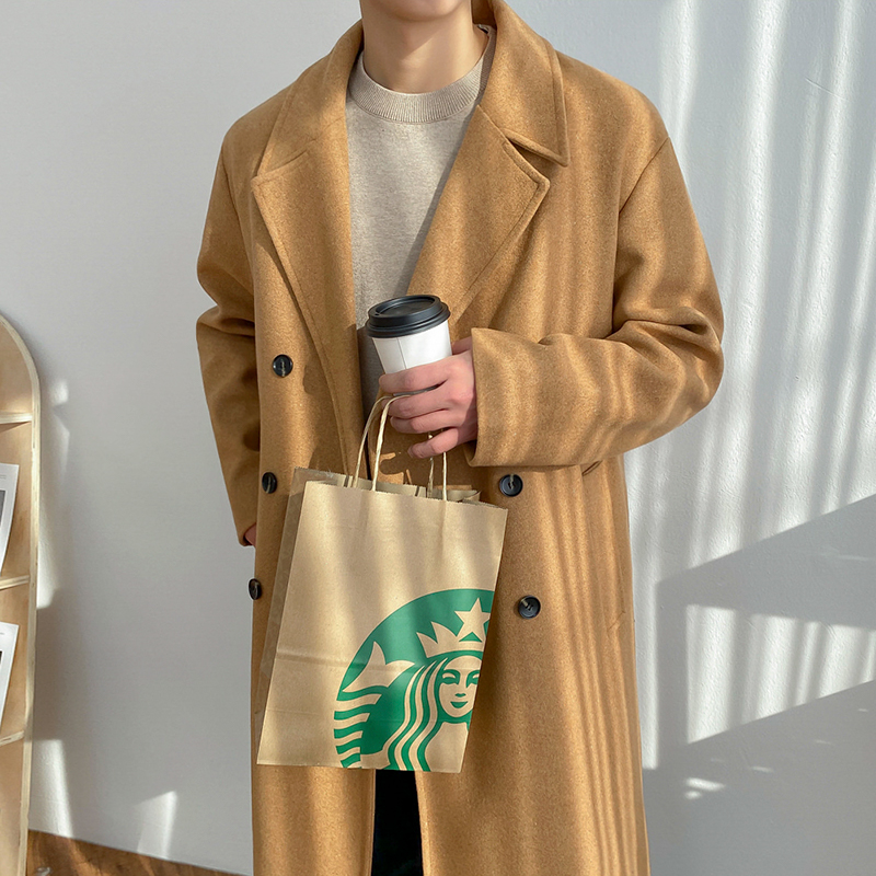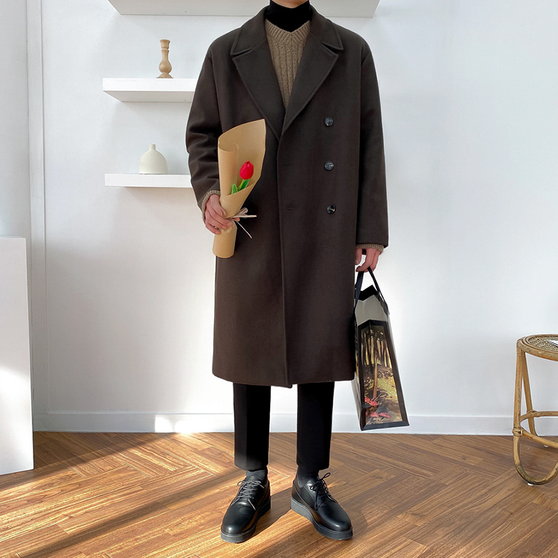 MRCYC韩系毛呢大衣男中长款风衣ins潮流双面呢外套秋冬季加厚上衣
