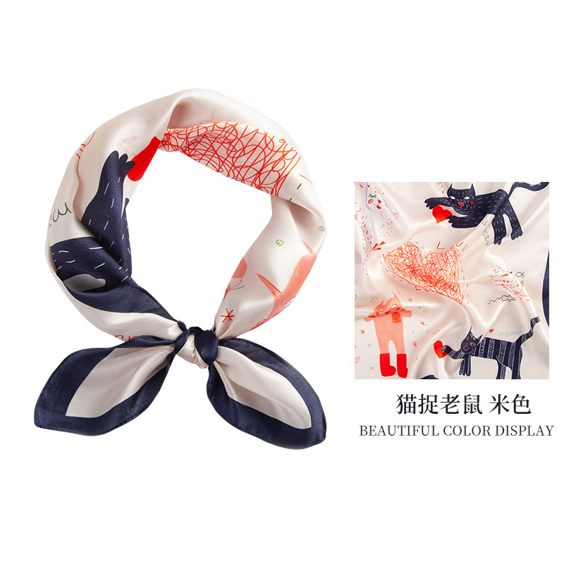 儿童可爱真丝丝巾宝宝上海故事100%桑蚕丝防风护颈拍照新款方巾