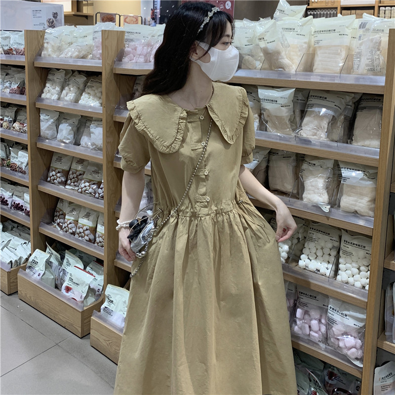 春装150cm女装XXXS加小码矮个子显高减龄甜美木耳边衬衫连衣裙女