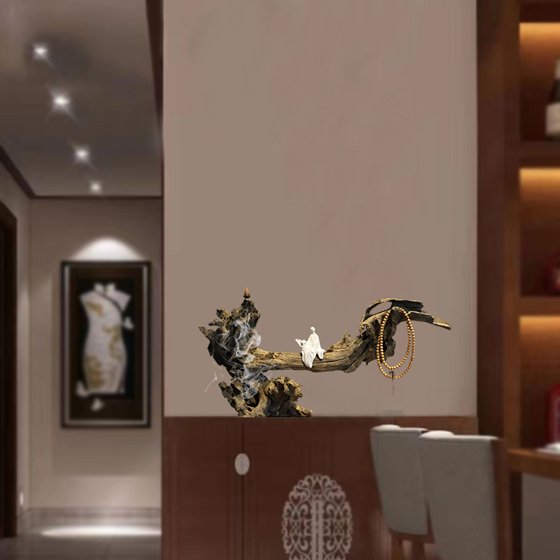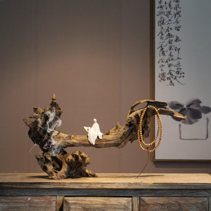 实木根雕天然树根禅意摆件茶桌客厅玄关倒流香民宿家居桌面装饰品