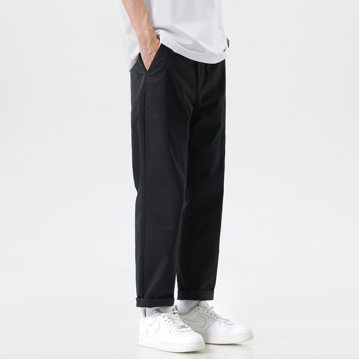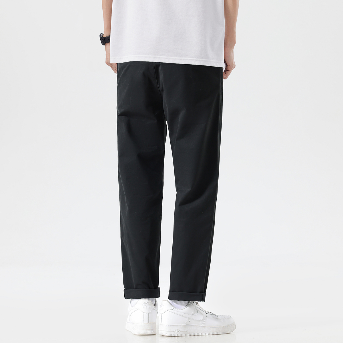 hansca2025秋季新款纯棉直筒休闲裤男黑色通勤弹力工装商务长裤子