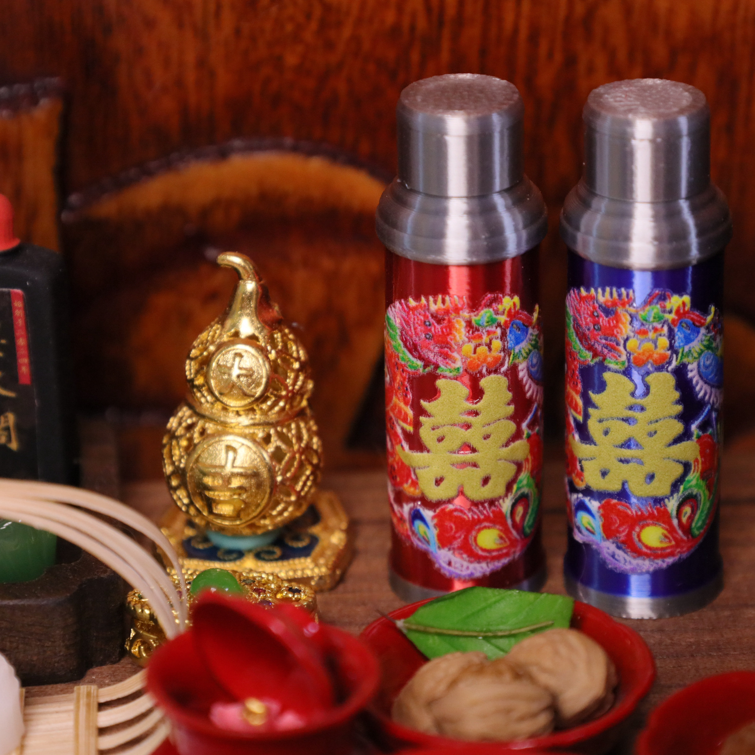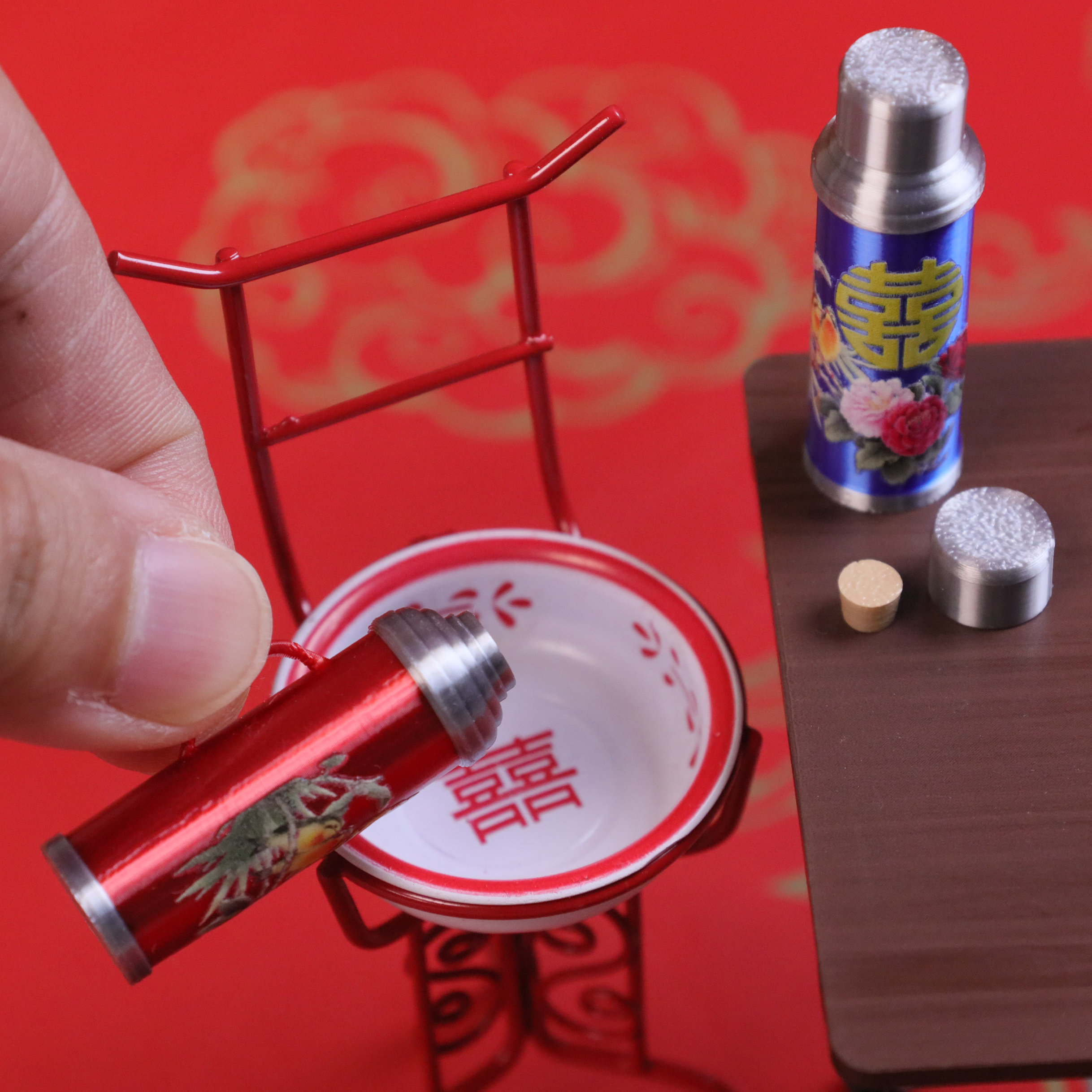 迷你微缩娃娃屋中式怀旧场景暖水壶脸盆架折叠桌模型R7