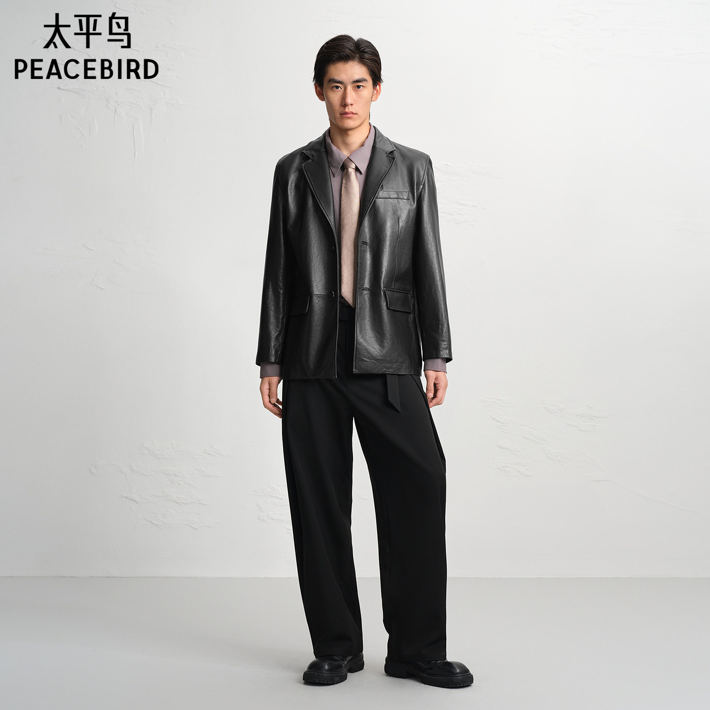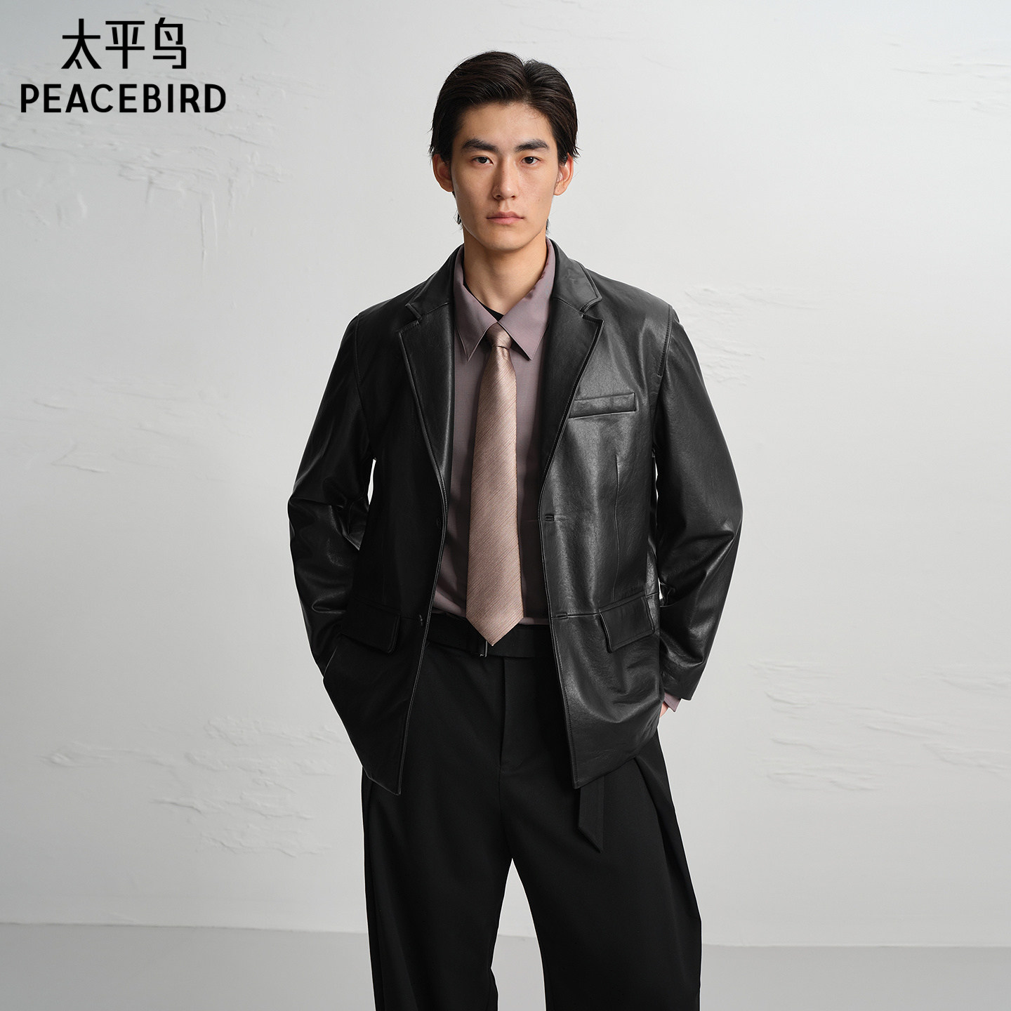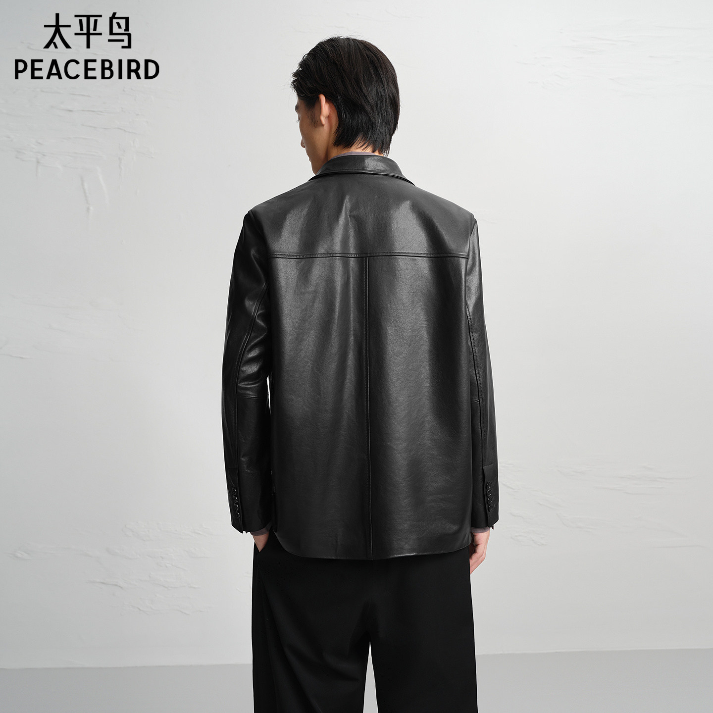 【商场同款】太平鸟男装 真皮皮衣2025年黑色西装领夹克B1BDF4F17