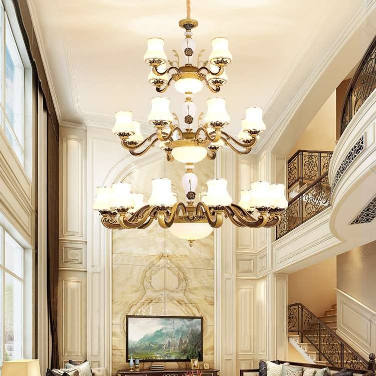 欧式复式楼大吊灯奢华大气楼中楼客厅灯具豪华中空楼梯枝形吊灯