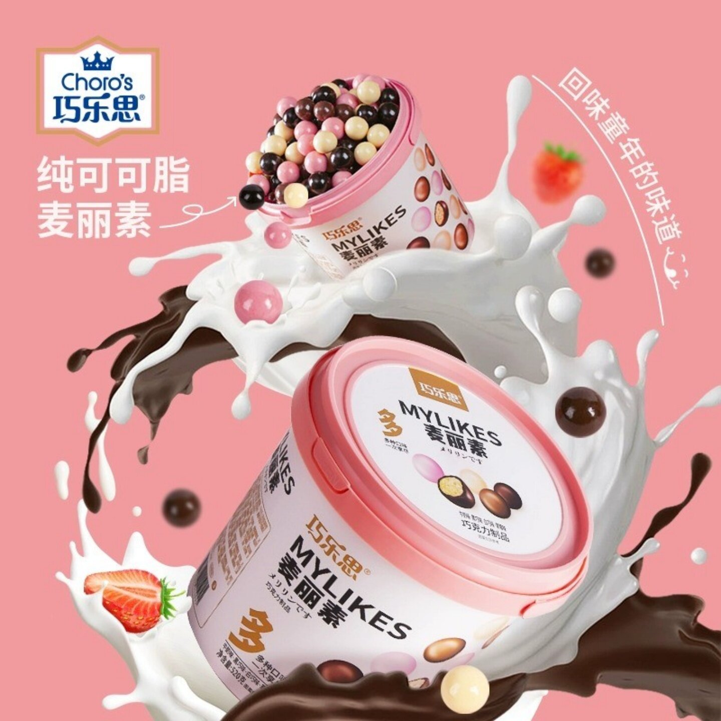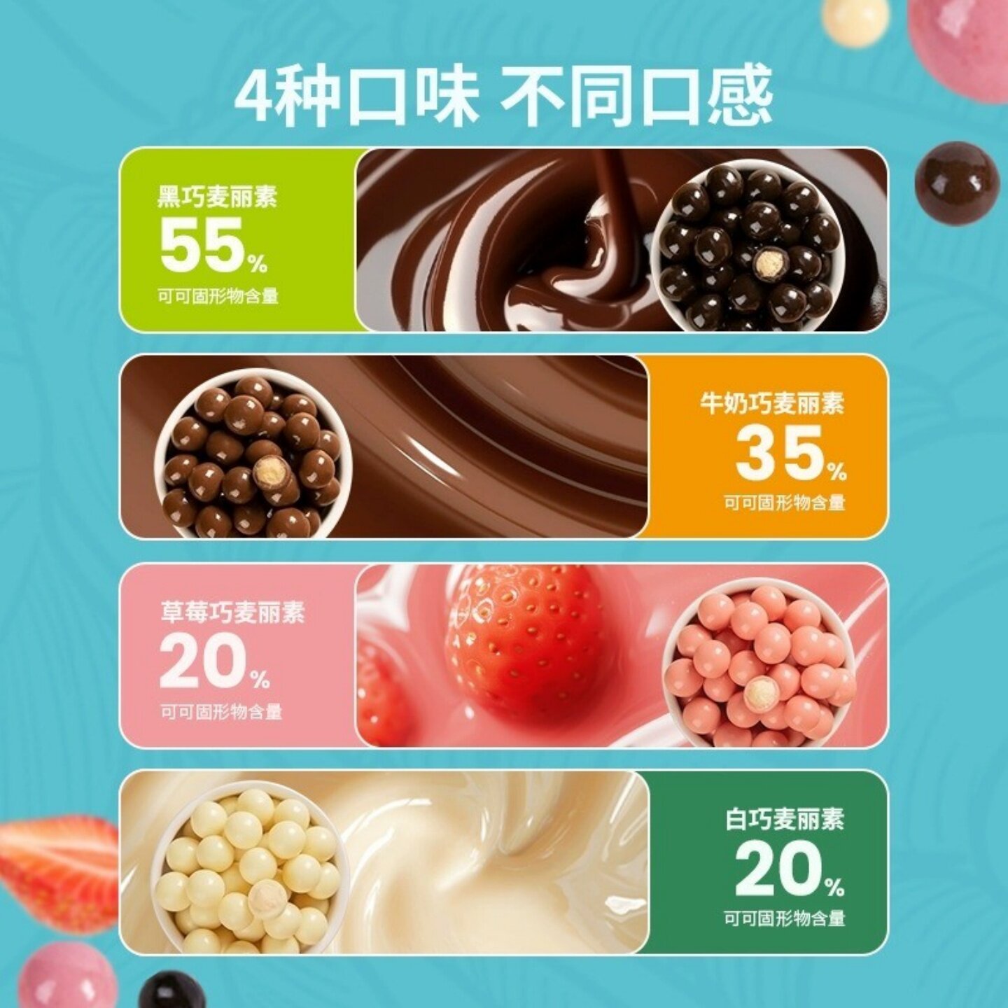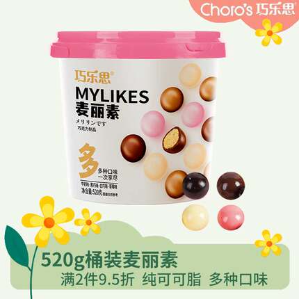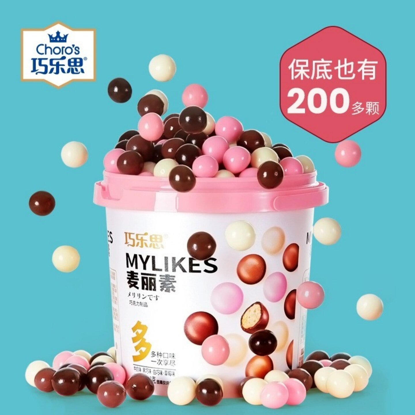 巧乐思四口味黑巧麦丽素巧克力豆桶装520g纯可可脂喜糖正版老牌子