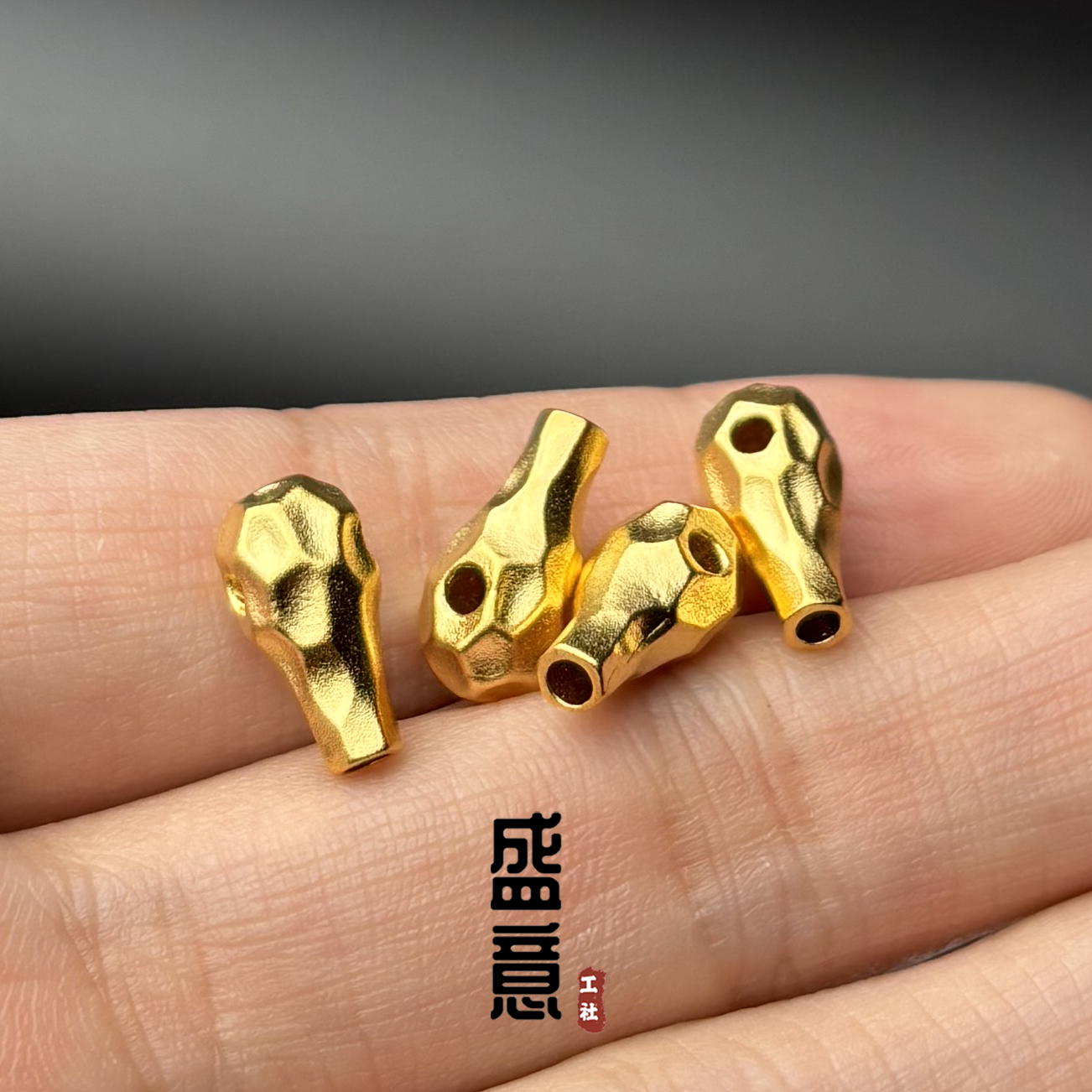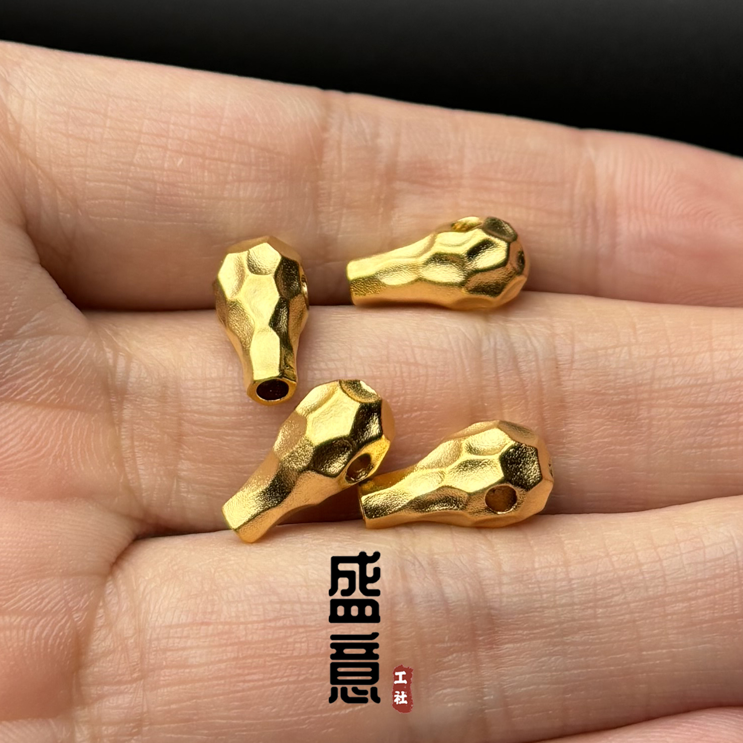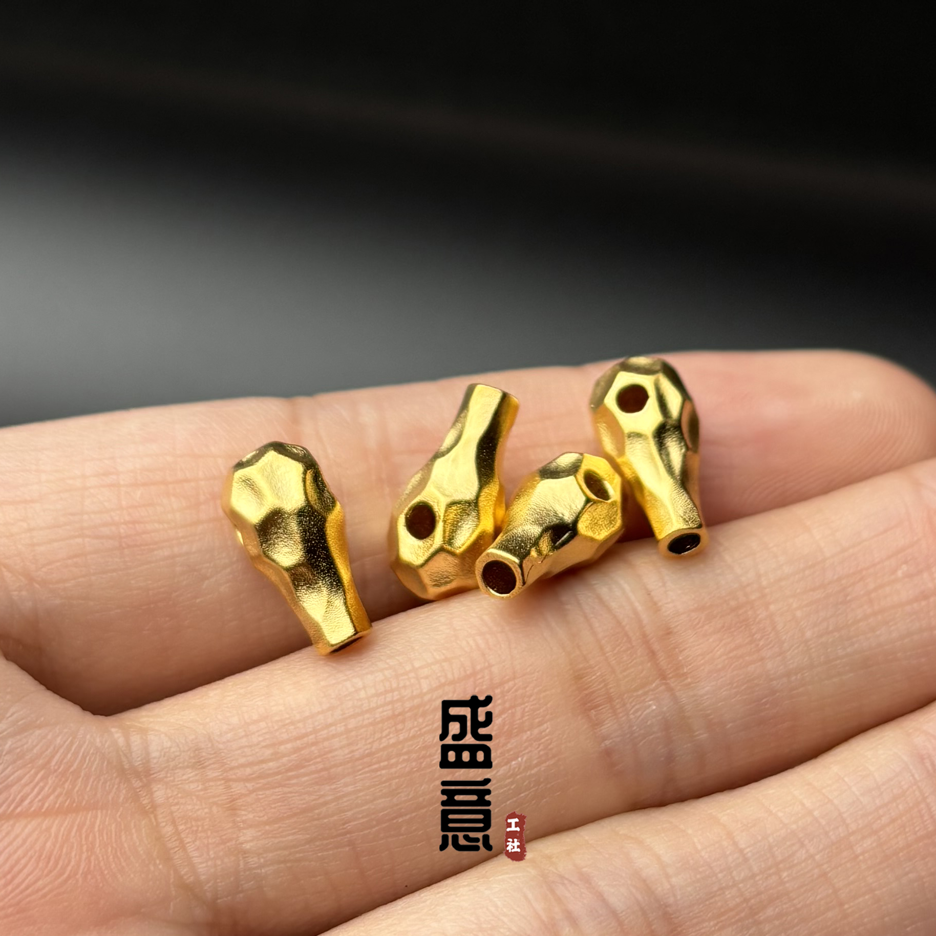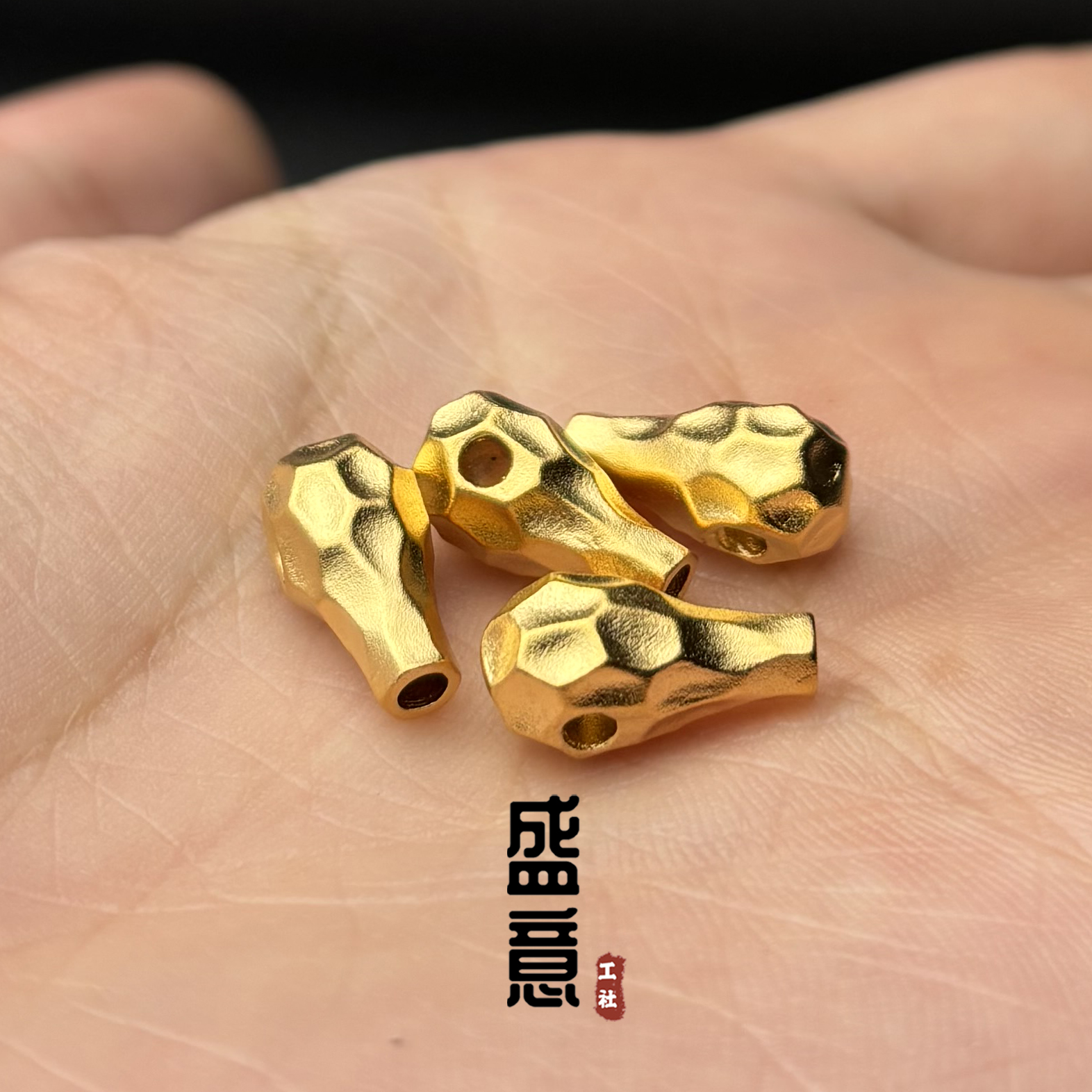 古法24K工艺黄金色925无相三通金刚星月菩提手串手持108颗配饰