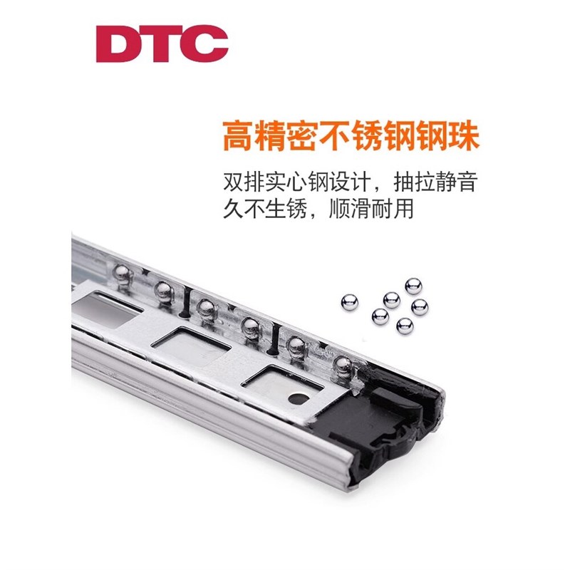 东泰抽屉滑轨dtc衣柜三节滚珠滑轨阻尼橱柜轨道静音家具五金导轨
